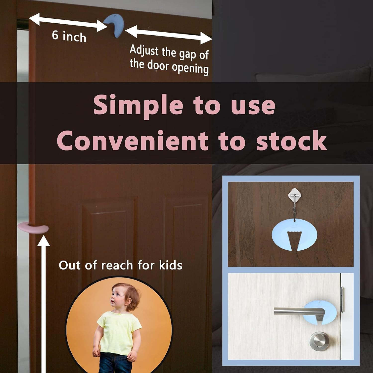 • Intelligent Design Toddler Door Stopper: Flexible C Shape makes it easy to attach and fits around any size door. The door slam stopper Innovative 'teeth' make the pinch guard and door combination more stable, therefore it will not fall off even with a strong slam.