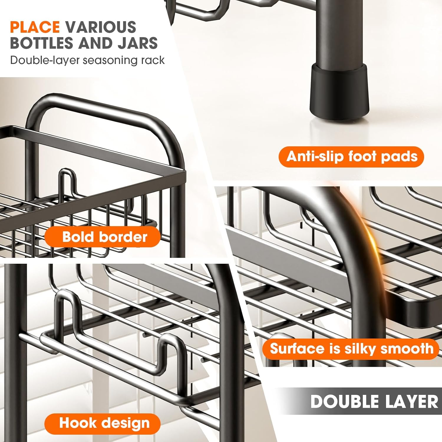 • Sturdy Metal Spice Rack: Features rust-proof and waterproof metal construction that resists corrosion and is easy to clean, ensuring your counter rack looks new for years