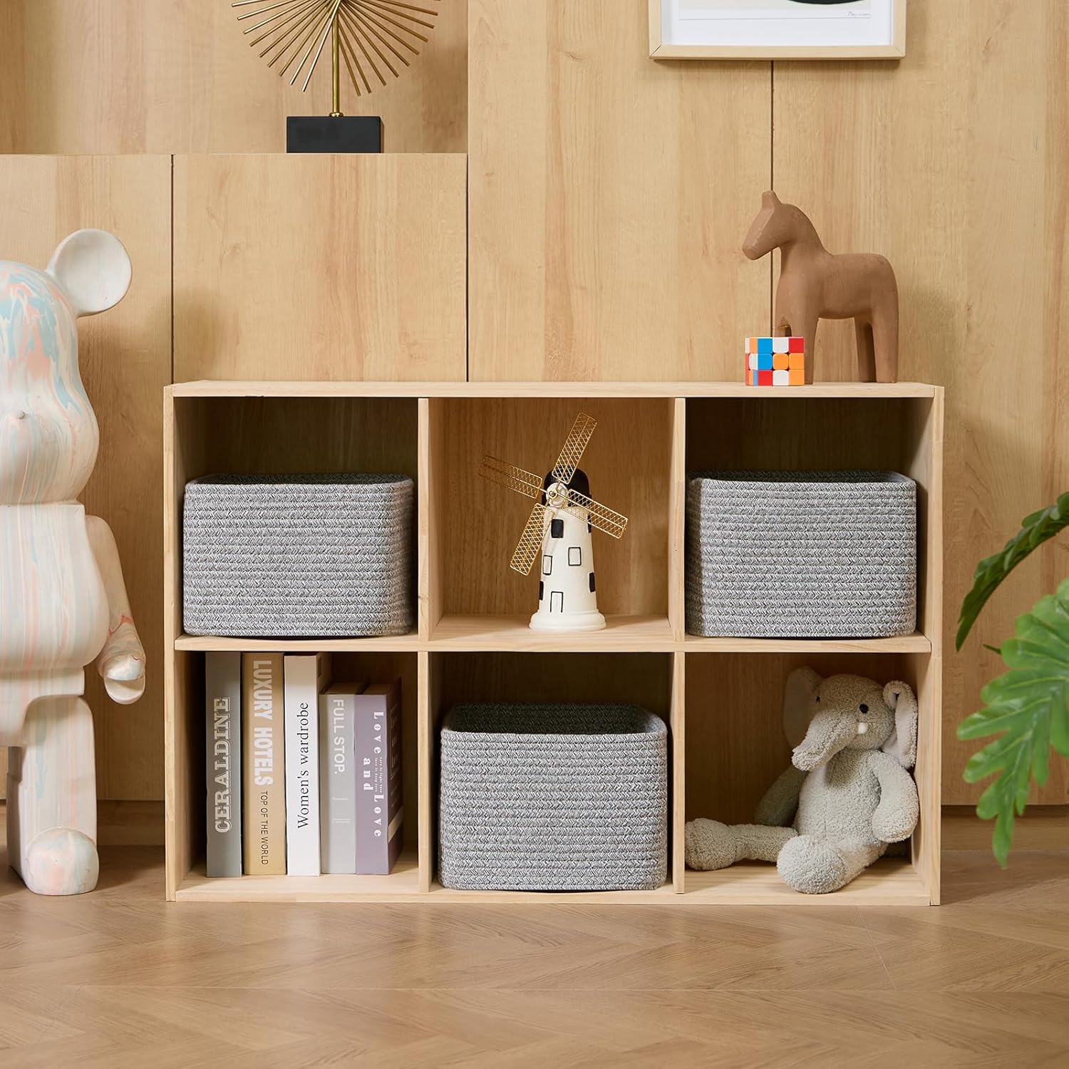 • [Compact Size]: Measuring 9.7 x 9.7 x 7.1 inches, these shelf baskets are designed to hold various small items around the house. Each set of 3 baskets is perfect for organizing intimate clothing, books, towels, cosmetics, toys, snacks, and other small items