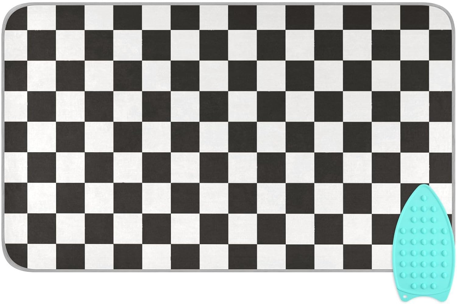 Checkered Black Ironing Mat Thickened Ironing Blanket Travel Portable Double-Side Using Ironing Pad Travel Isolate Heat Pad Cover for Washer Dryer Table Top Countertop 27.6x47.2in