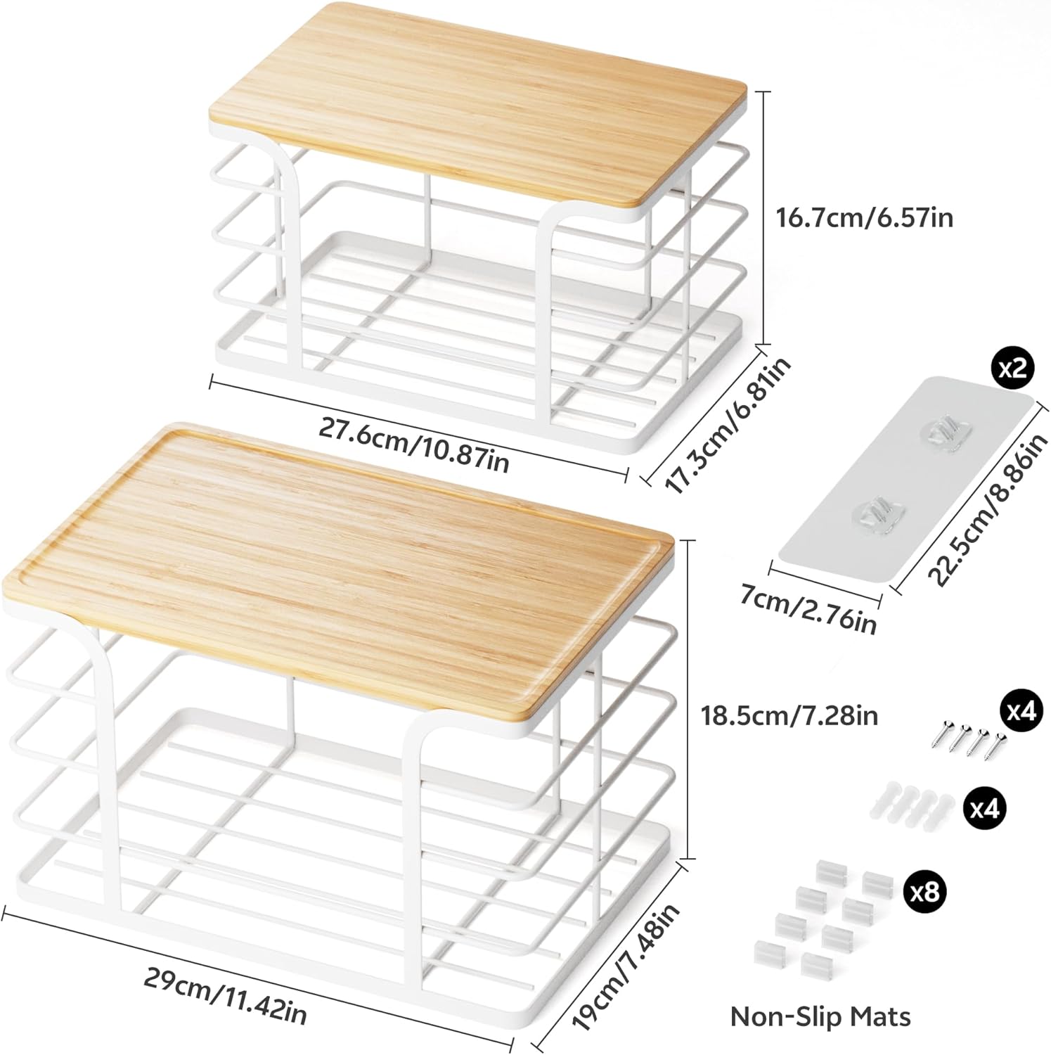 2 Pack Extra Large Stackable Pantry Organizer,Wall Mount Garbage Bag Holder Dispenser with Bamboo Top for Kitchen Laundry Room Organization,White