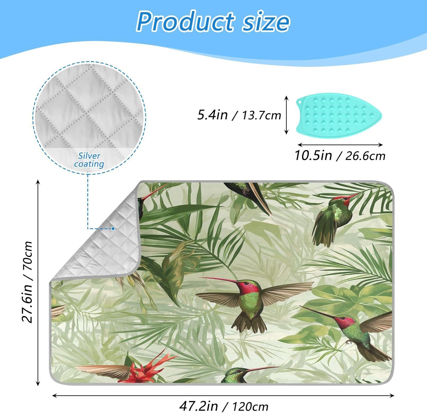 Green Anna Hummingbird and Palm Leaves Ironing Mat Thickened Ironing Blanket Travel Portable Double-Side Using Ironing Pad Travel Isolate Heat Pad Cover for Washer Dryer Table Top Countertop 27