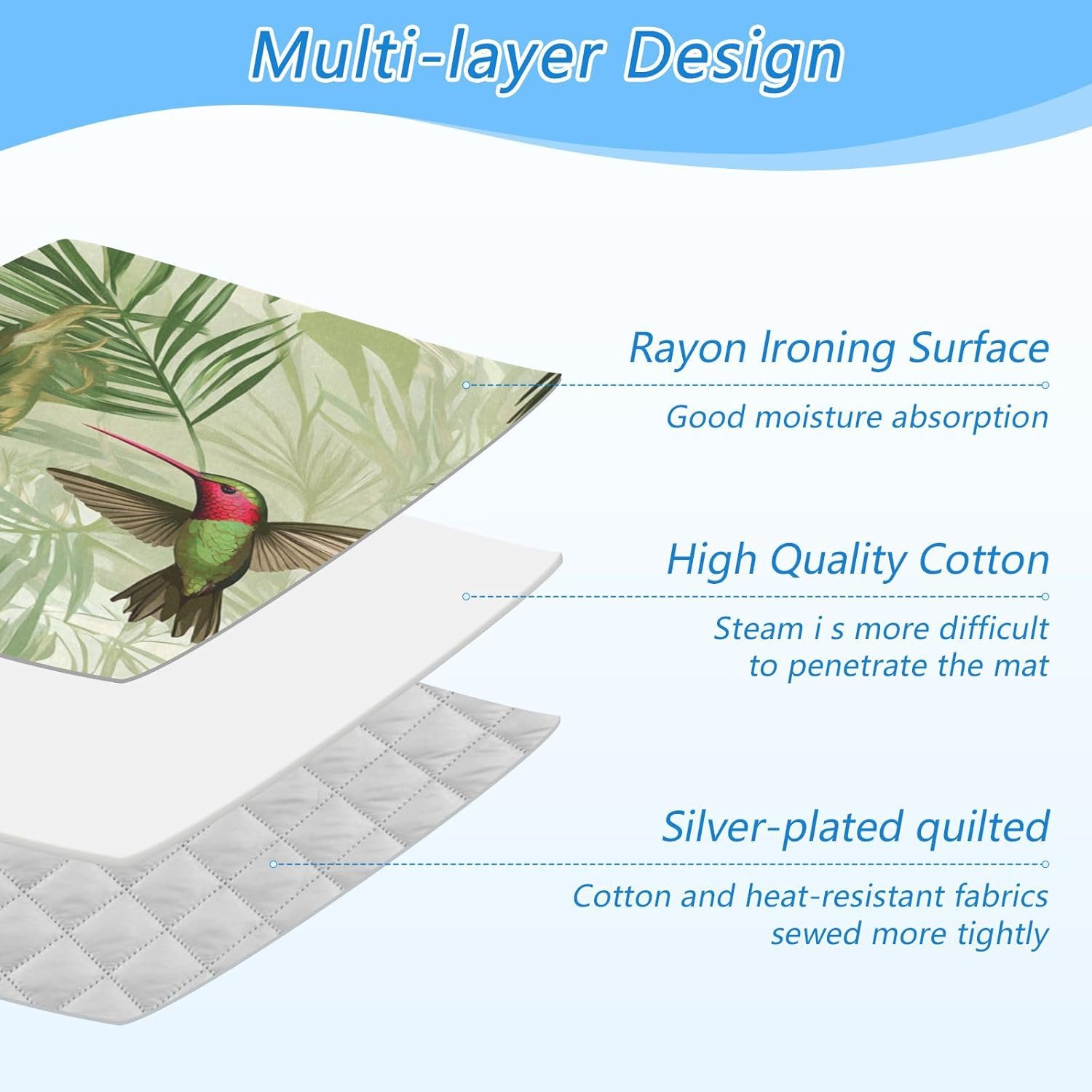 • Premium Quality Material: Crafted from high-quality cotton and heat-resistant fabric with silver quilting, our ironing blanket protect your clothes and ensures your cloth tabletop stay safe from heat damage