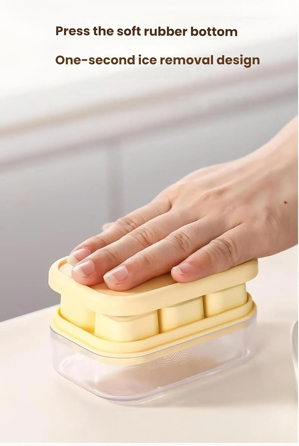 • 【Easy release ice cube trays】 The ice cube tray with lid and bin has a soft silicone bottom that can be pressed with fingers or a lid with multiple upholder,it's very easy to remove ice .Equipped with a small ice box to prevent ice from scattering