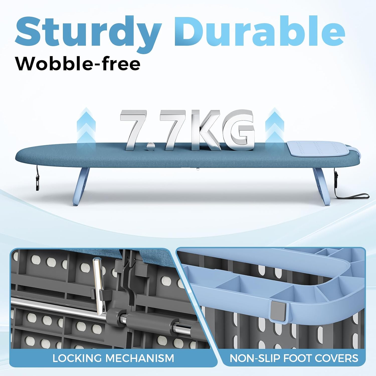 • Practical Details: This mini iron board features a convenient hanging rope with a buckle, not only can be hung on wall hooks, behind doors, also can storage in a closet. Meanwhile, four anti-slip silicone dots help shield floors from scratches and easy to use on table top, ensuring that it won't shake or shift easily during the ironing process