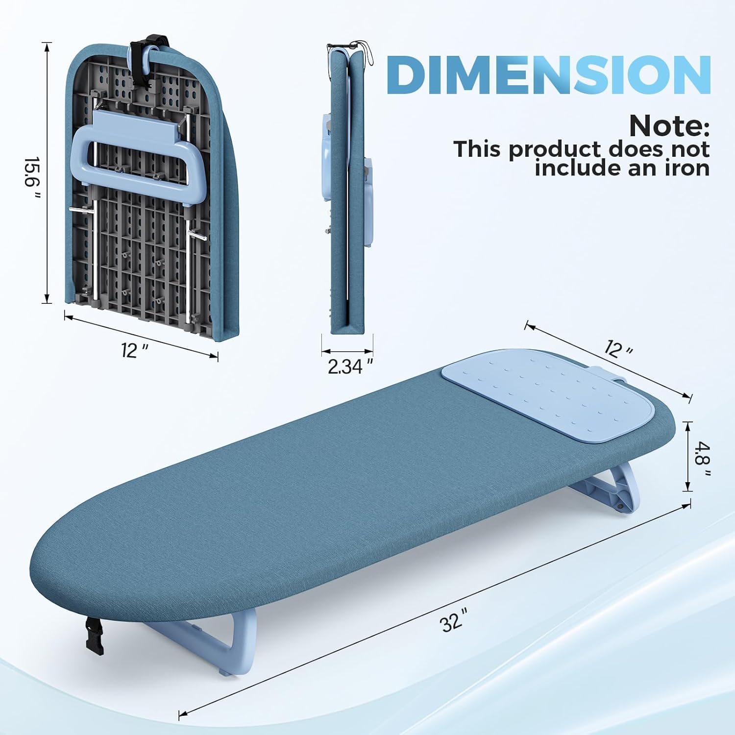 KINGBOARD Tabletop Ironing Board, Small Ironing Board with Iron Mat, Foldable Mini Iron Board, Easy Storage for Travel & Dorm, 12x32 Blue