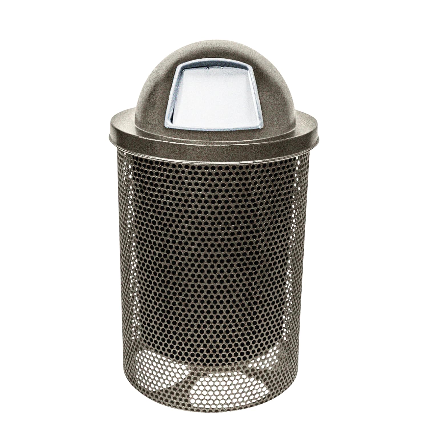 COATEDOUTDOORFURNITURE 32-Gallon Heavy-Duty Punched Steel Round Trash Receptacle, Commercial Outdoor Waste Bin with Liner & Black Dome Lid – Made in America (Textured Gold Vein)