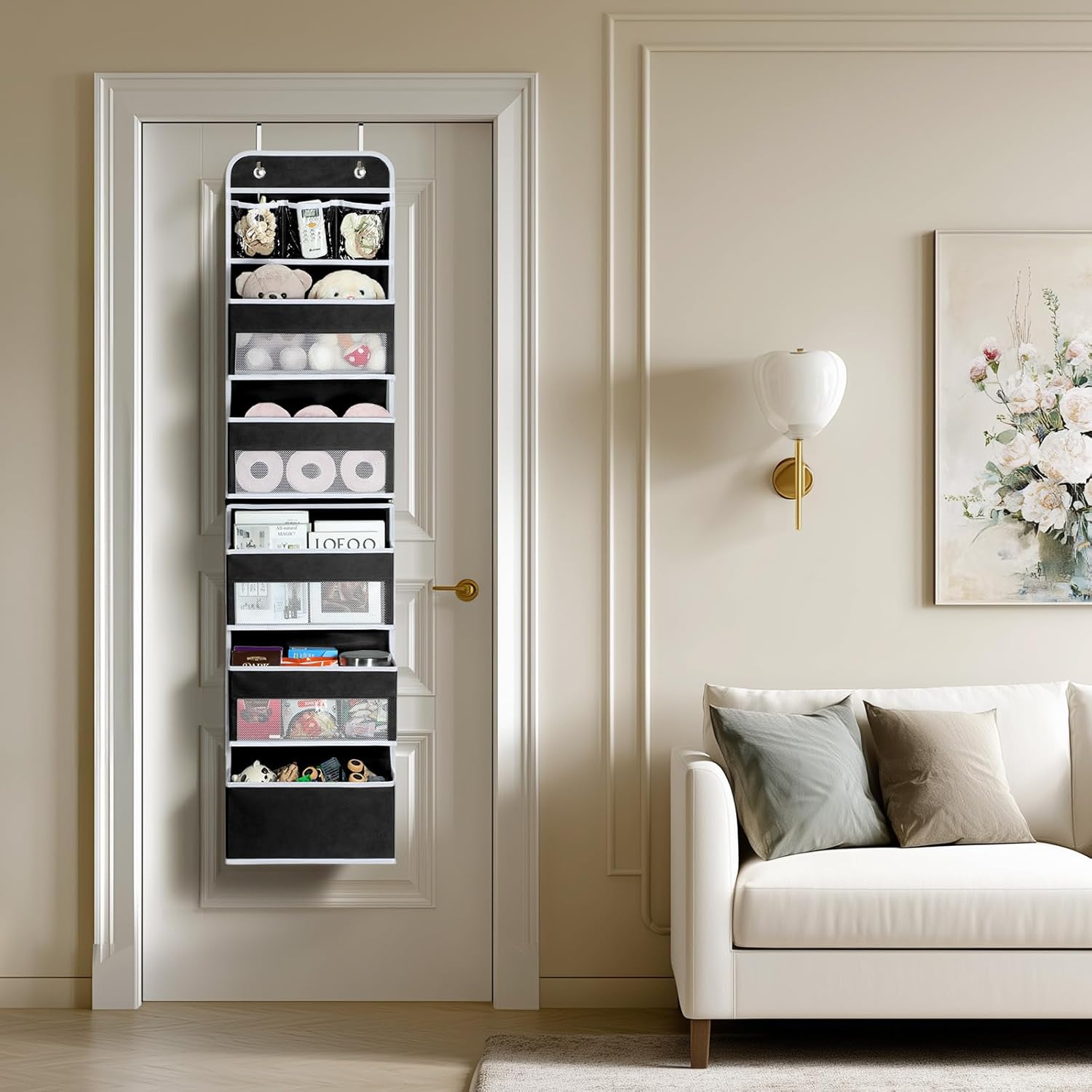• Multi-Use Room Organizer: Ideal for maximizing storage in any space, this versatile closet door organizer works wonders in living rooms for remote controls or magazines, laundry rooms for detergents or fabric softeners, and kitchens for dishcloths or small utensils. It’s also great for entryways or closets, turning unused door space into practical storage to keep your home tidy.
