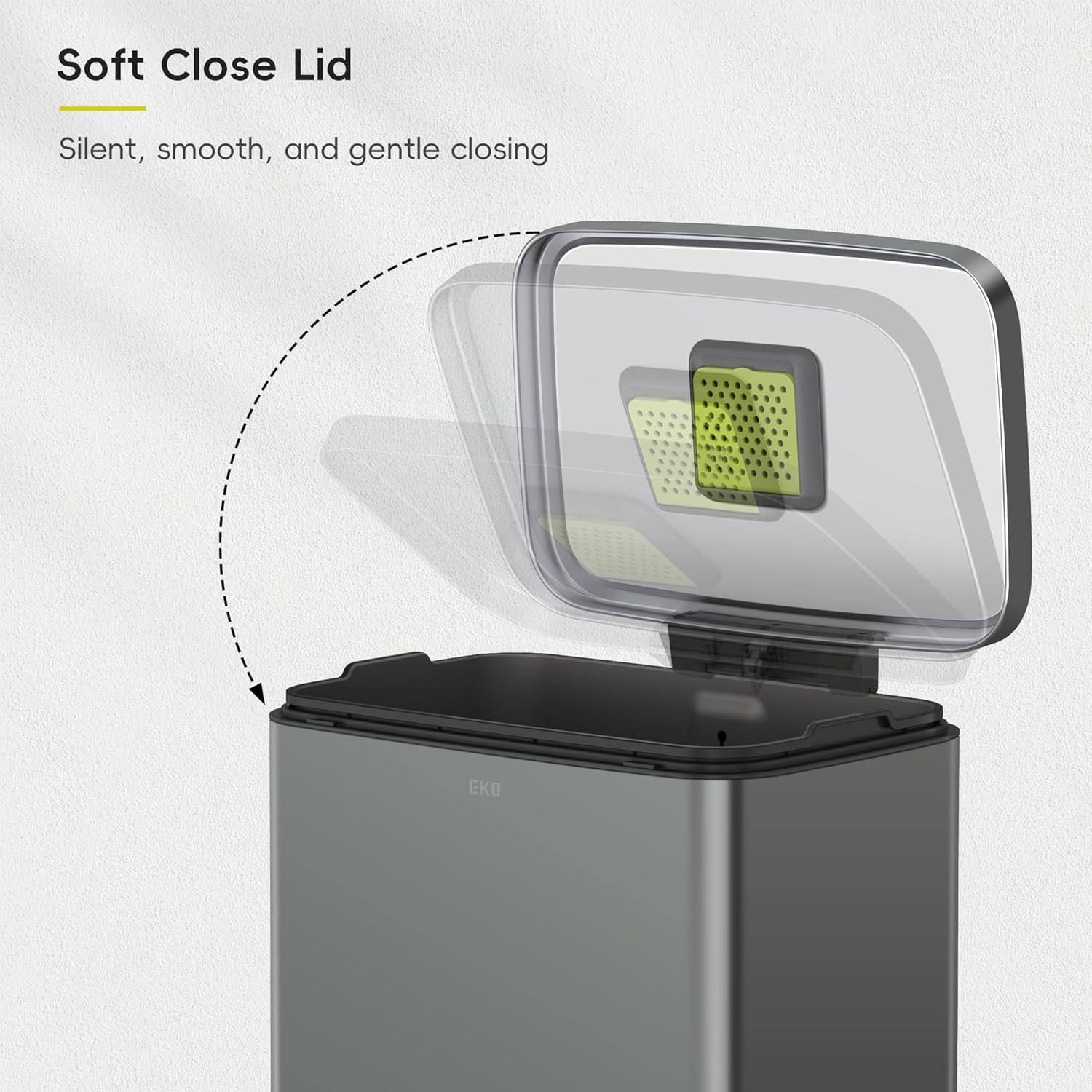 • Whisper-quiet Closing - The rugged step pedal mechanism is built to withstand years of daily use, and the bi-force damper soft open and close lid prevents slamming and banging.