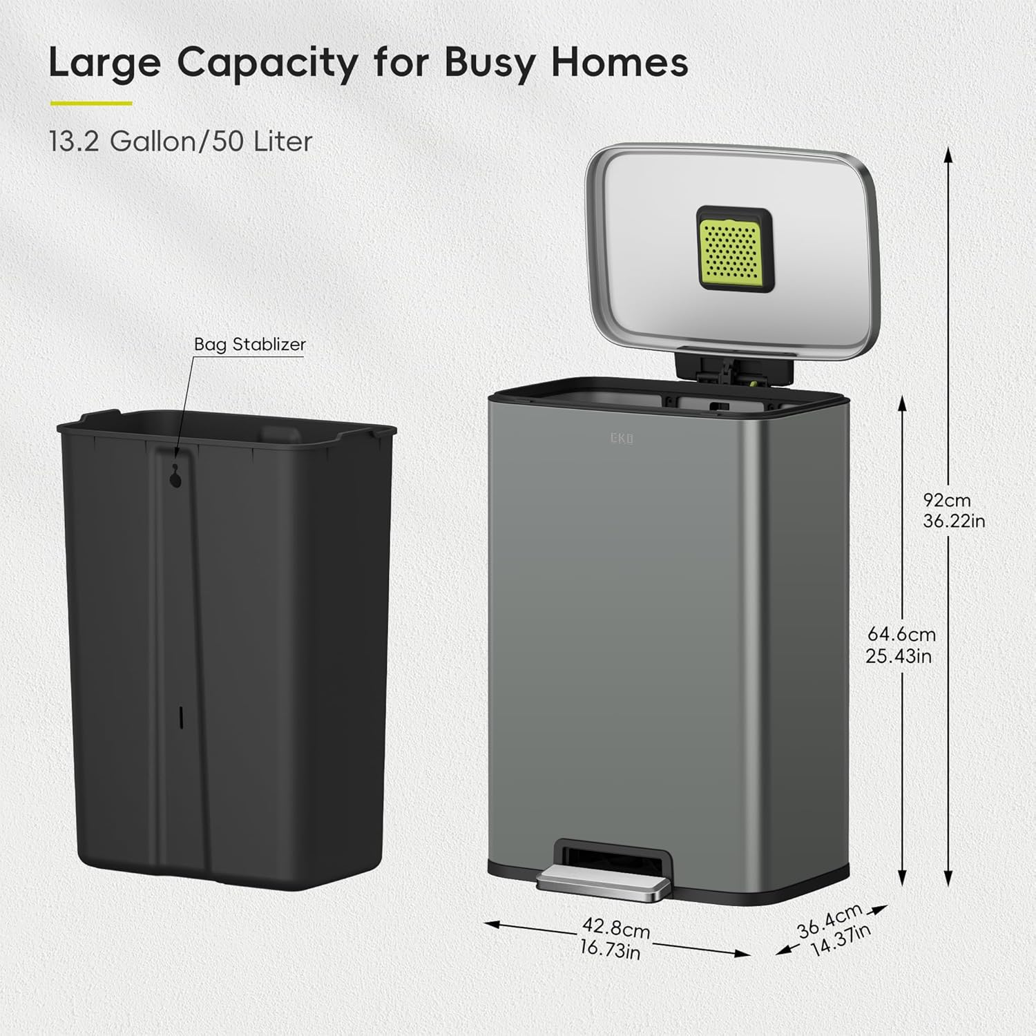 • Superior Stainless Steel Build- This heavy-duty stainless steel garbage can boasts an ultimate fingerprint-resistant stainless steel construction that provides a versatile and stylish waste disposal solution perfect for the home, office or other spaces.