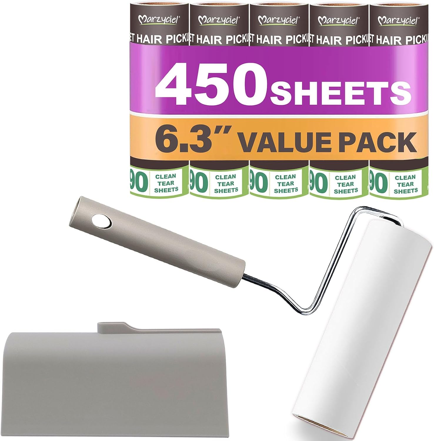 • Large Surface Area, High Sheet Count: Includes one cotton roller and 5 packs of 90 sheets each, totaling 450 sheets. With a width of 6.3 inches (16 cm), this eco-friendly and odorless extra large lint roller is perfect for clothing, sofas, carpets, pet beds, floors, and other furniture.