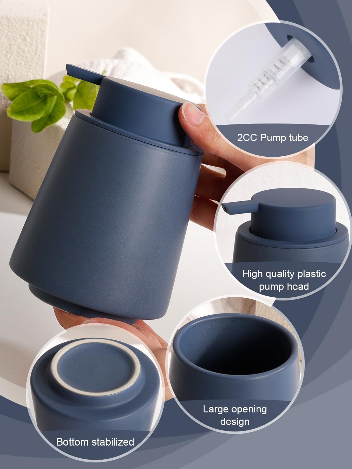 • Ceramic Liquid Soap Dispenser: Natural and safe blue liquid dispenser, can add a variety of room temperature daily use liquid. Reusable, refillable and recyclable
