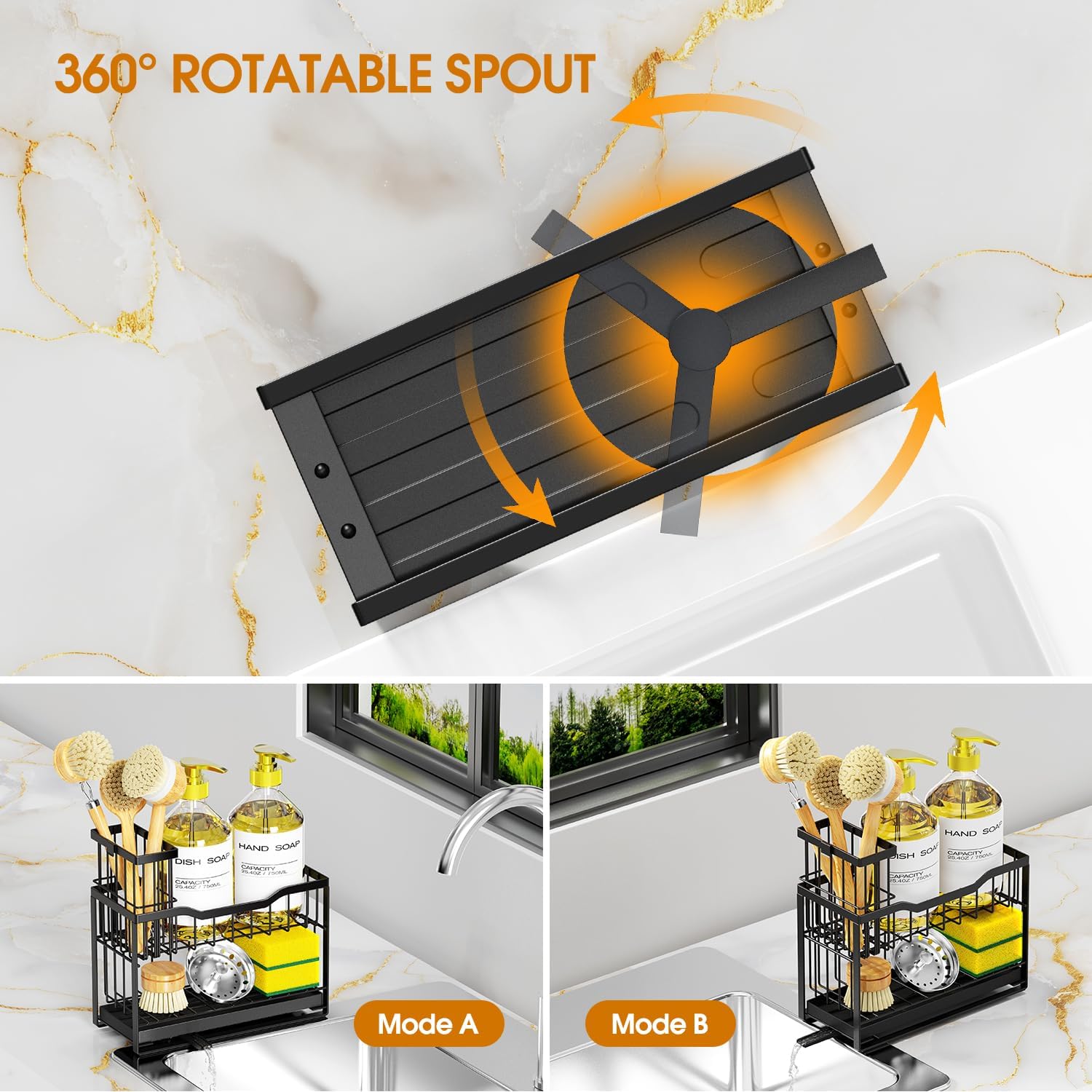 • 【360° Rotatable Spout】This kitchen sink organize comes with a 360° rotating spout,ensures it can swivel in three directions so that the water in the sponge can be directed to the sink.There won't be any water left on the countertop,you don't need to frequently remove the drain tray to clean,saving your cleaning time