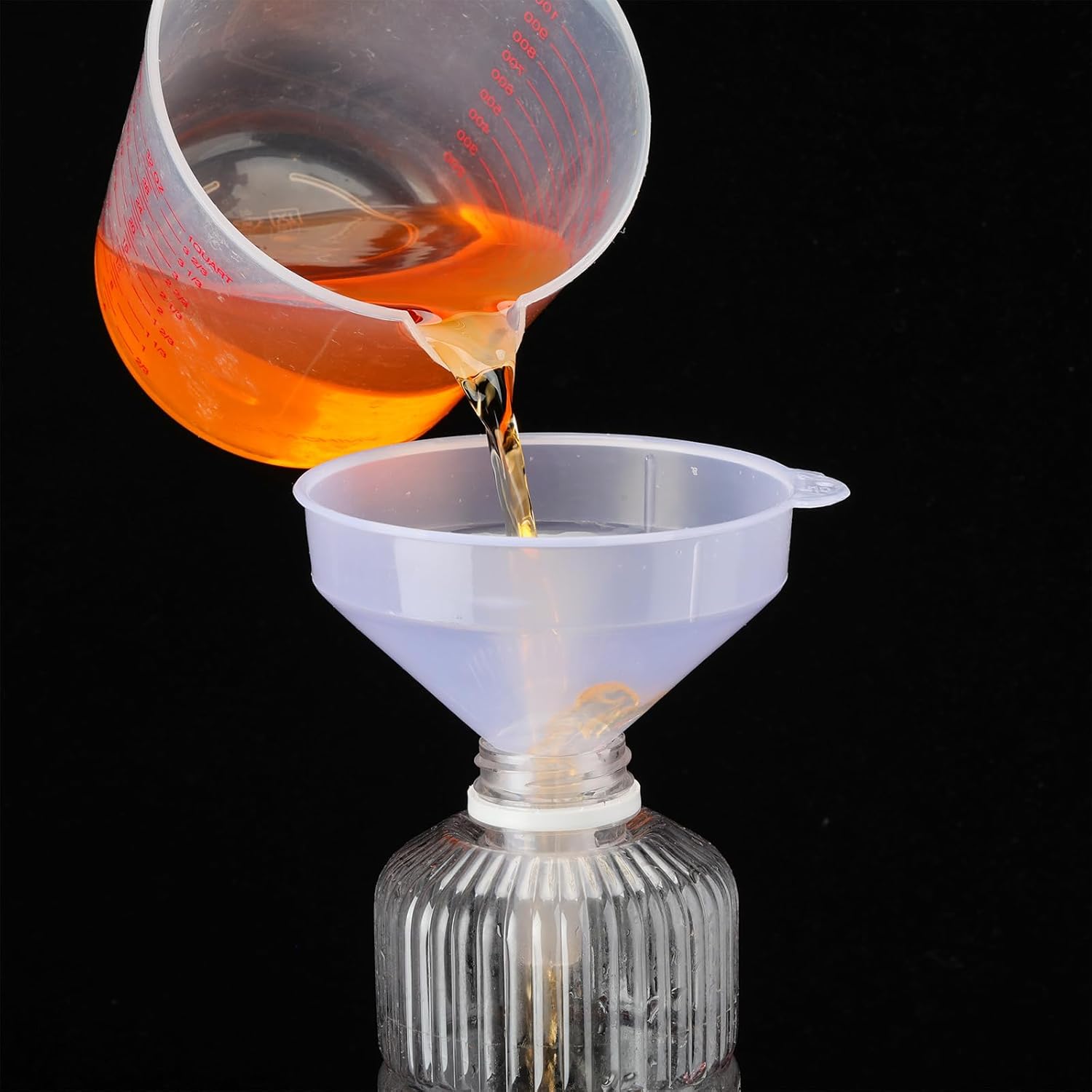 Honeydak 18 Pieces Multi-Purpose Plastic Funnels 4.7 Inch Wide Mouth Funnels for Filling Bottles, Jars, Containers Lab Use Oil Funnel for Gas, Car Oil, Lubricants and Fluids (White)