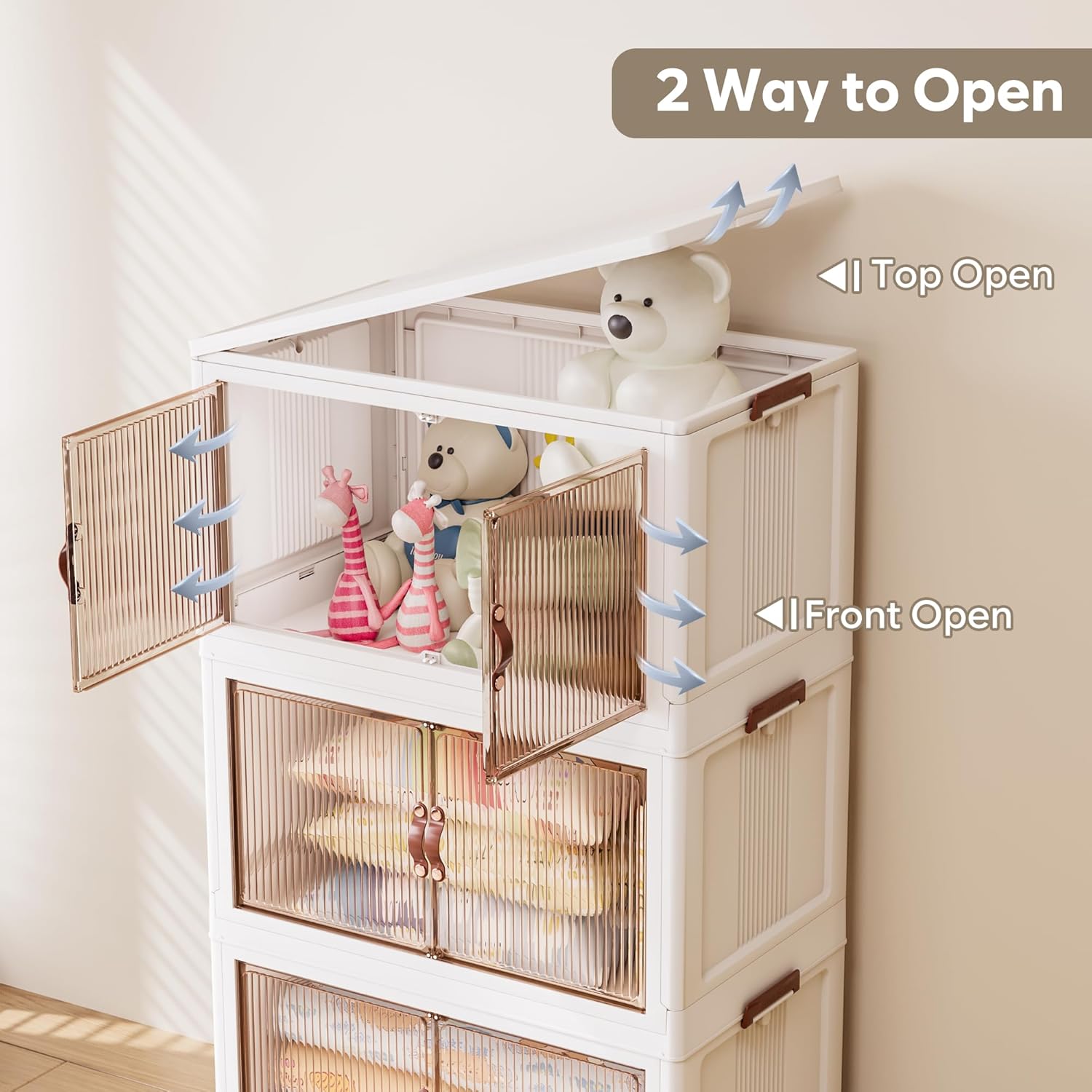 • 【Magnetic Doors & Rotating Wheels】The bins offer two opening options: front or top. The magnetic closure allows easy access. The 4 rotating 360-degree wheels make them easy to move, ideal for use in storage and organization in any room like your closet or bathroom.