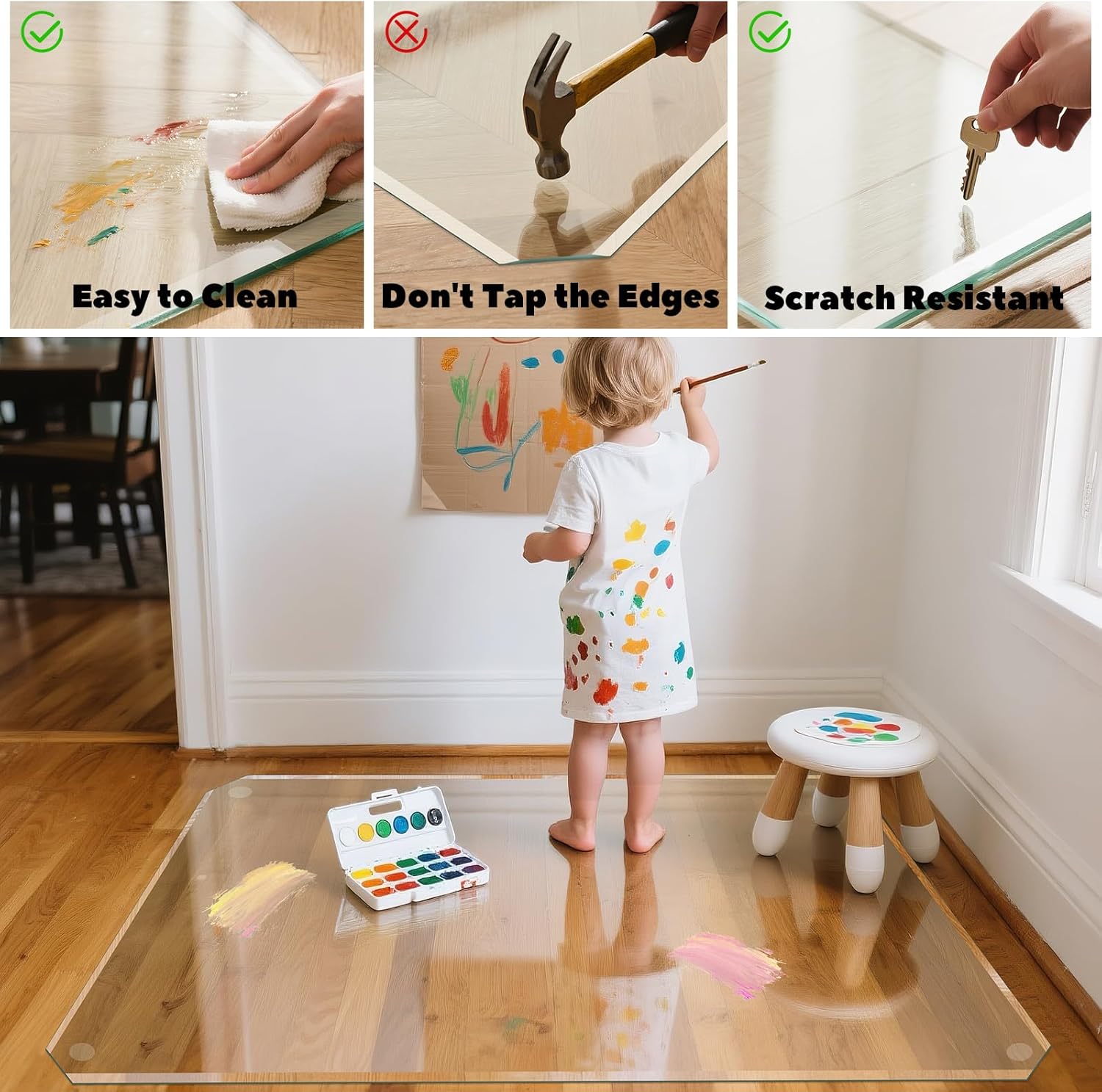 • ✅PREMIUM BEVELED EDGES DESIGN: This glass floor chair mat with beveled edges ensures that ensures safe sliding of the chair, making it easy to transition from the glass floor cushion to the ground without suddenly falling off, which is more ergonomic and reduces knee or waist joint pain. providing a smooth and relaxed experience.