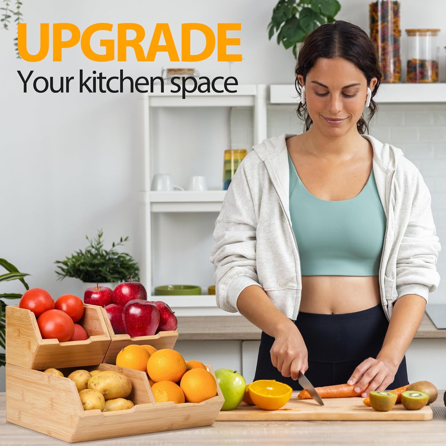 • 1. Premium Bamboo Construction → Our pantry organizers and storage is crafted with **natural sustainable bamboo** , these bamboo pantry bins prevent chemical leaching while resisting moisture and odors—keeping potatoes, onions, and dry goods fresher 30% longer than plastic organizers. Idea for potato and onion storage.