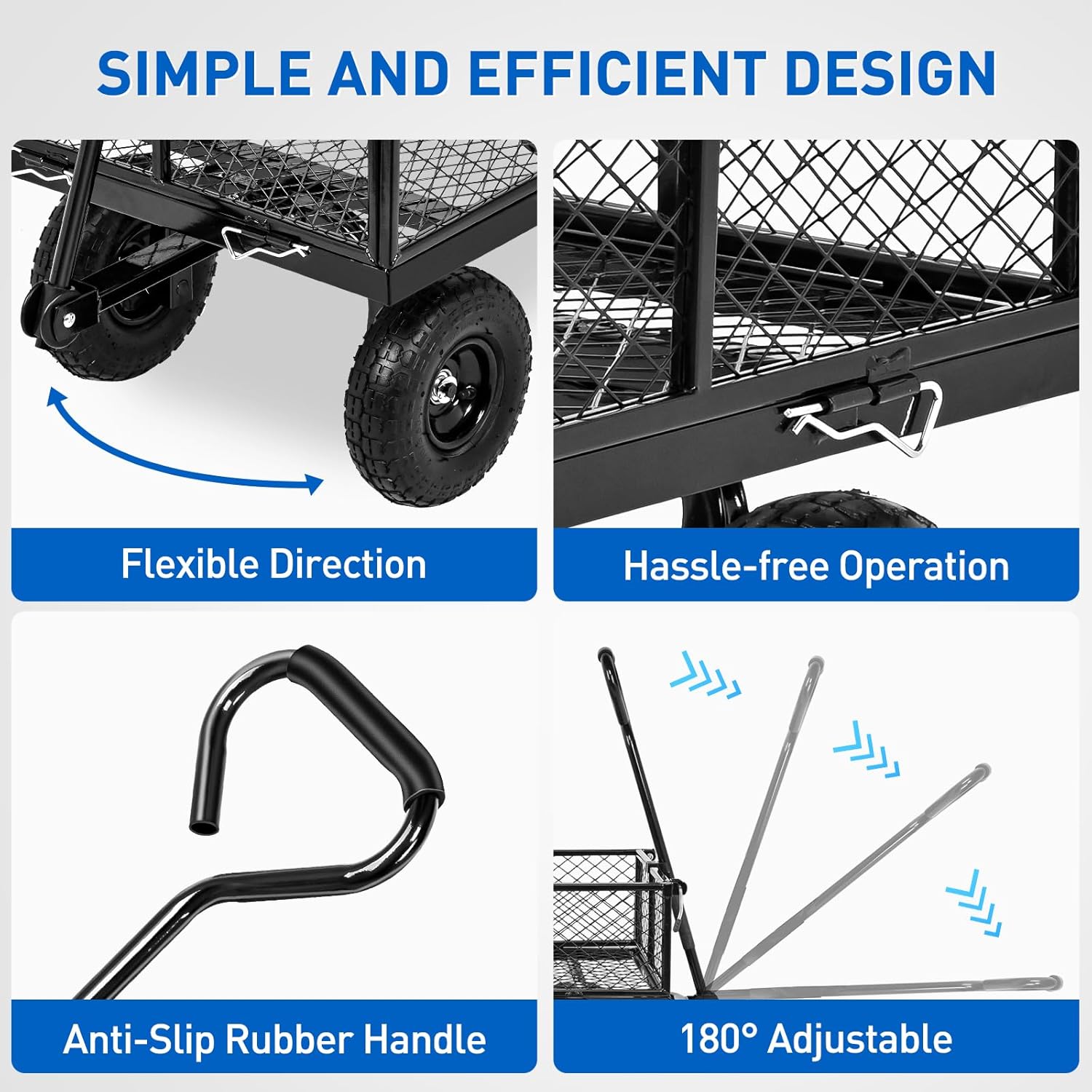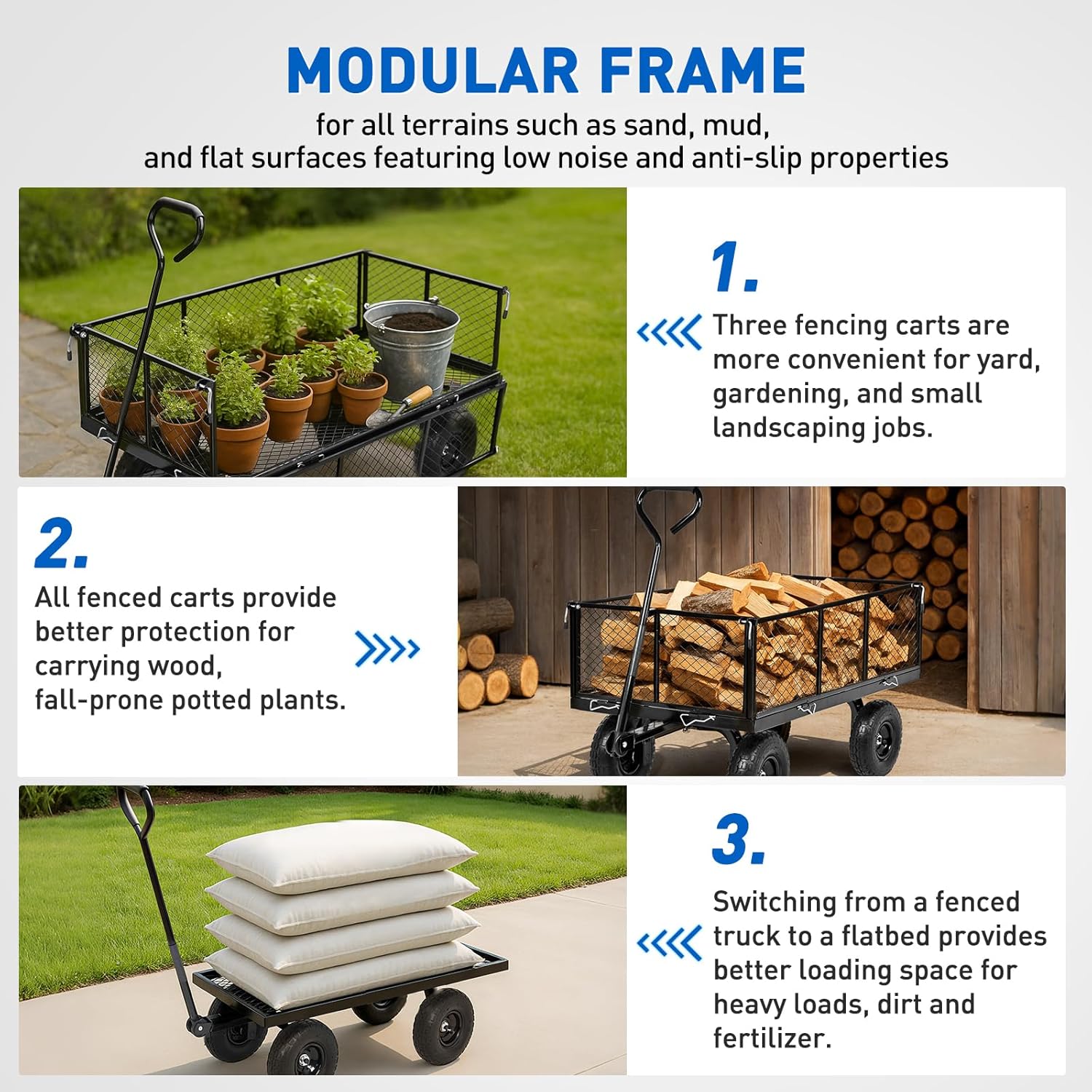 • 2-in-1 Convertible Design – Switch between a fenced cart and flatbed for different loads, with a spacious 7.69 cu. ft. cargo area