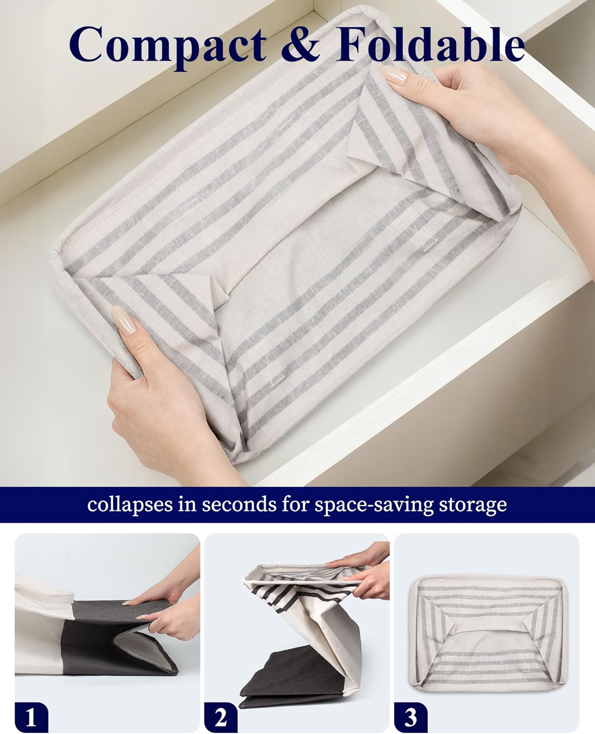 • EASY TO FOLD: Built with a collapsible design, this hamper folds flat for effortless storage. Its compact shape slides easily into tight spaces such as closets or drawers. It adapts to various settings and is easy to use as an RV essential and hamper for bedroom or dorm, making your laundry collection simple.