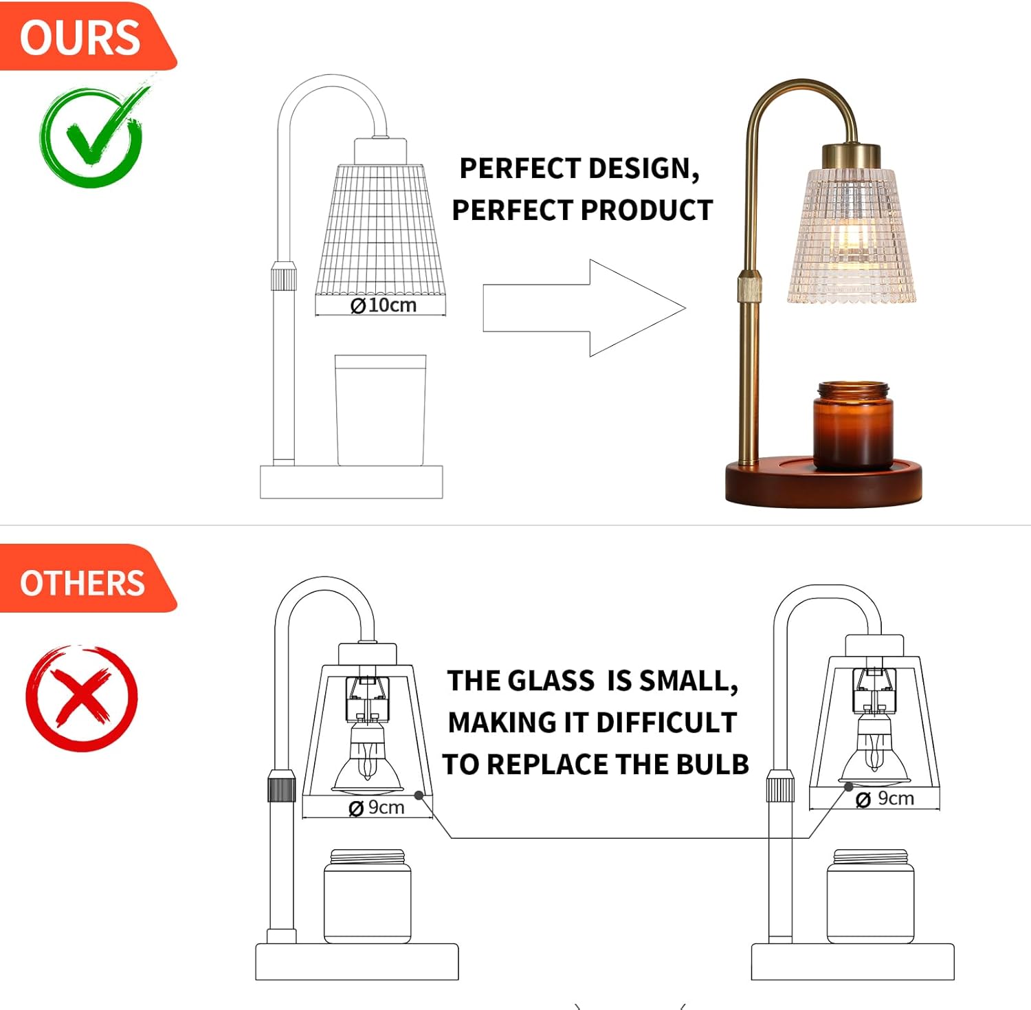 • Brand Quality and FITS ALL CANDLE SIZES: The fragrance electric wax melt warmer is compatible with multiple candles of different heights.The height from the base to the lampshade is adjustable, range from 4 inches to 5.7 inches, It can hold jar candles up to 6 inches in height. MEIXISUE brand produces high-quality materials and high-quality wooden base, anti slip pads under the base to ensure its stability.