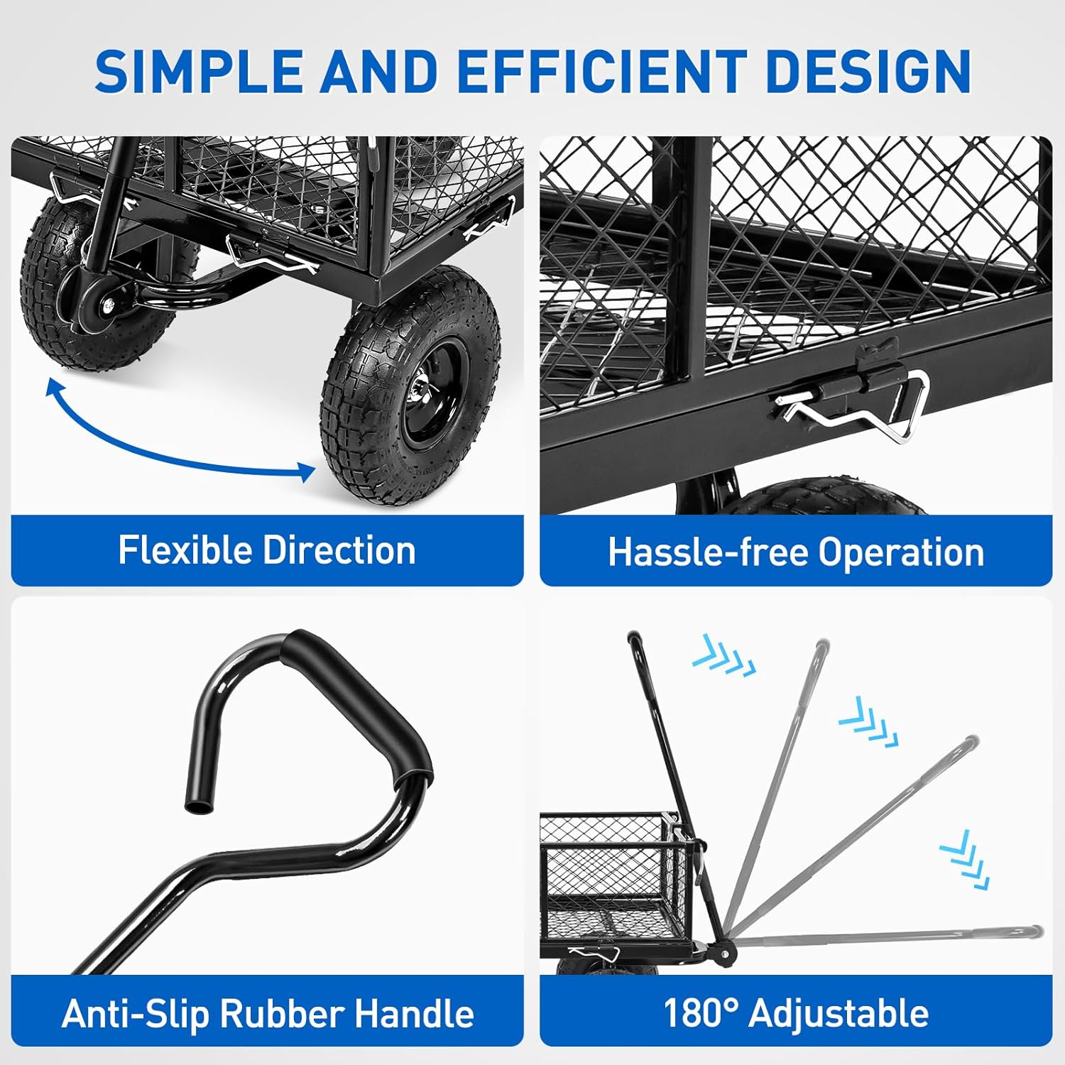 • 2-in-1 Convertible Design – Switch between a fenced cart and flatbed for different loads, with a spacious 3.69 cu. ft. cargo area