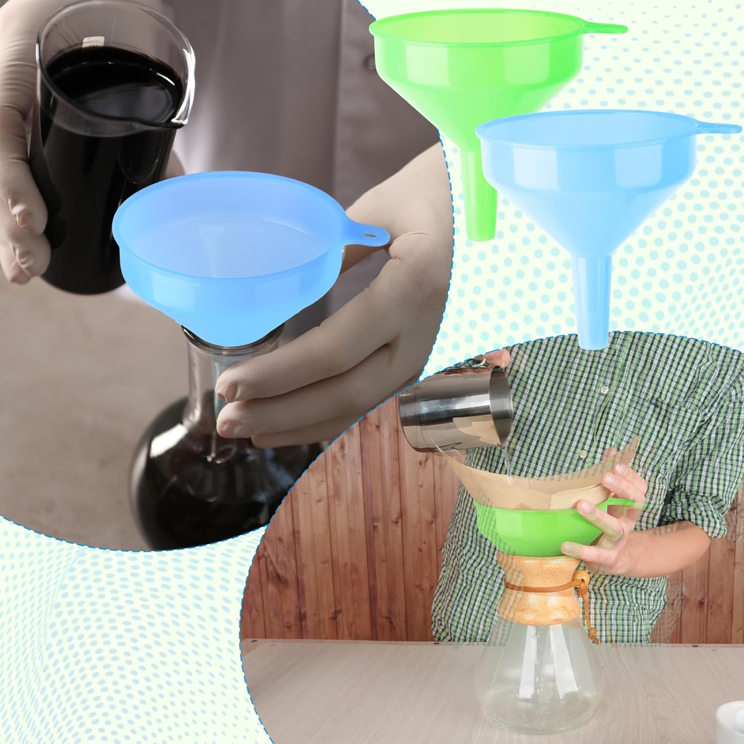 • 24 Pcs Funnel Set with 3 Vibrant Colors: good for lab/school use, this color-coded system (e.g., blue for water, yellow for oil) enhances efficiency and safety during liquid/dry chemical separation tasks