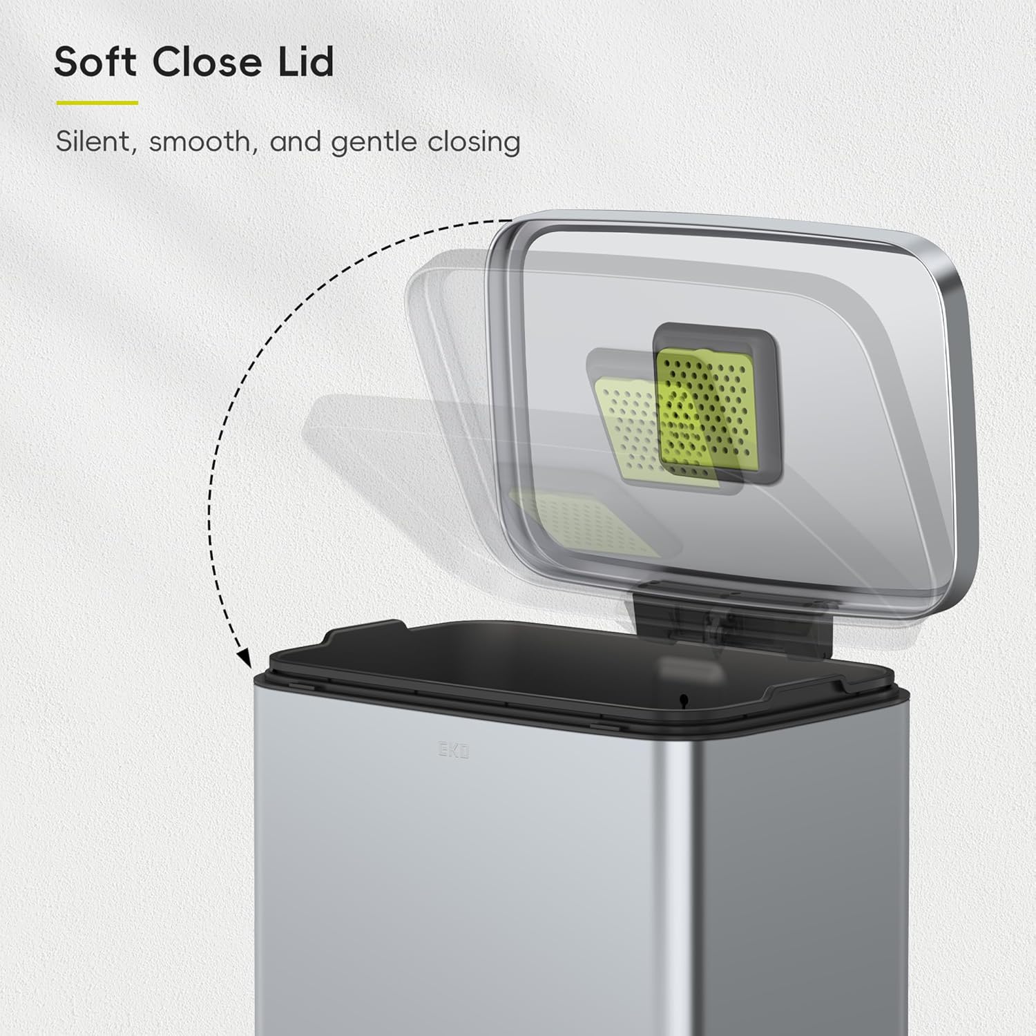• Whisper-quiet Closing - The rugged step pedal mechanism is built to withstand years of daily use, and the bi-force damper soft open and close lid prevents slamming and banging.