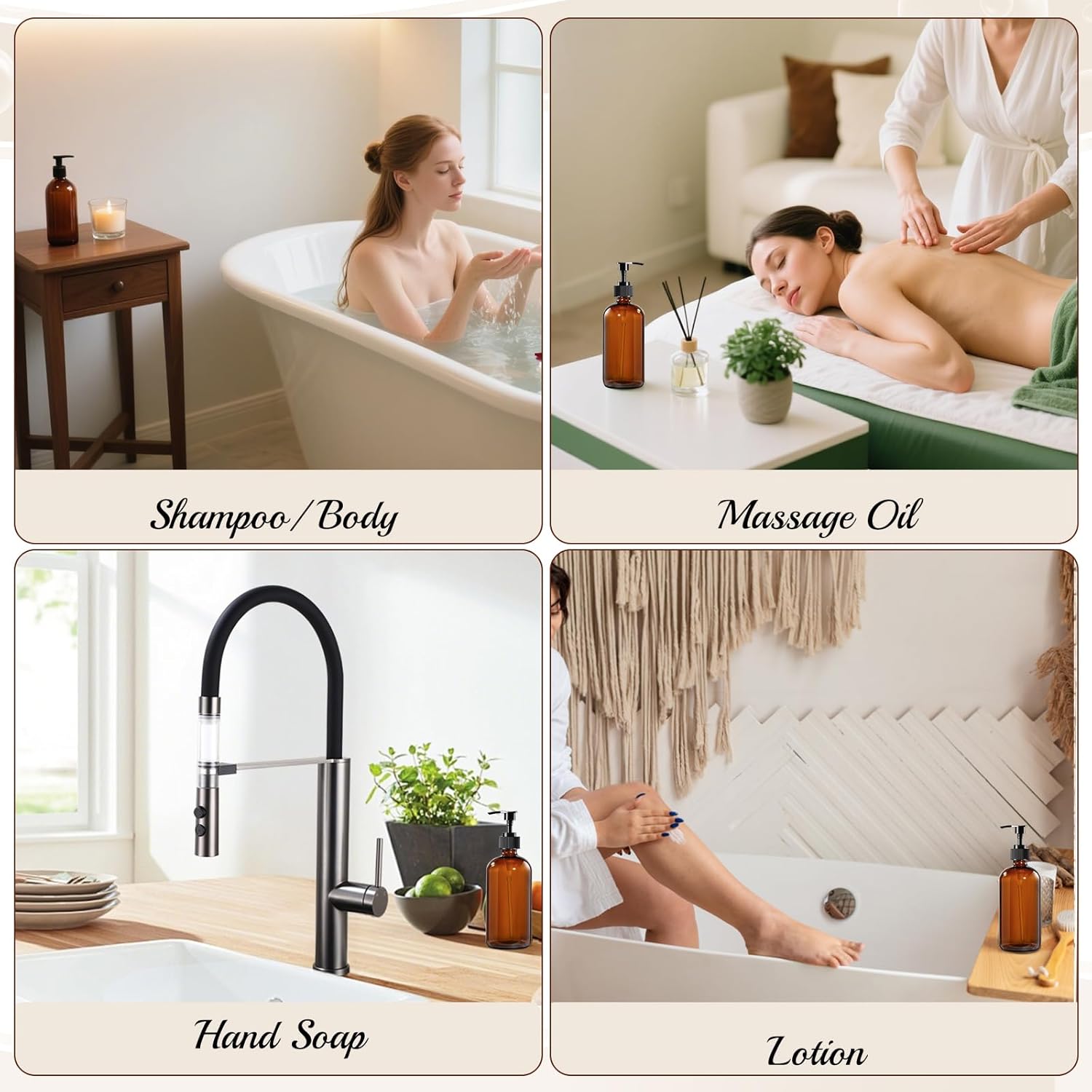• Multipurpose & Minimalist: These apothecary-style glass pump bottles enhance any countertop. Use them as a shampoo dispenser, lotion dispenser, or hand soap bottle. Great for home spa setups, farmhouse kitchens, or modern minimalist bathrooms.