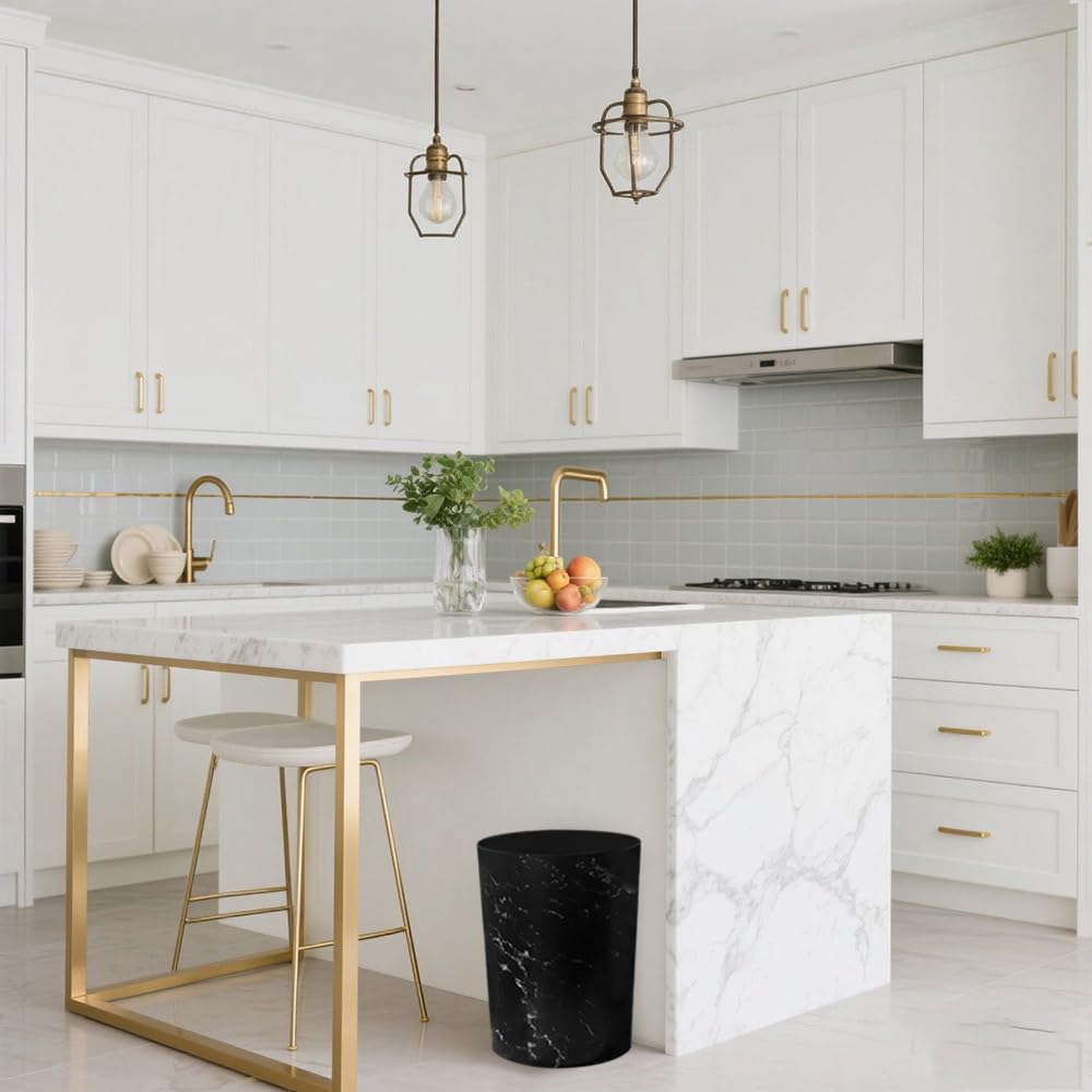 • Chic Marble Aesthetic:Featuring stylish marble - like patterns, this plastic trash can brings a touch of elegance to your space. It effortlessly matches various interior styles, from modern to classic.