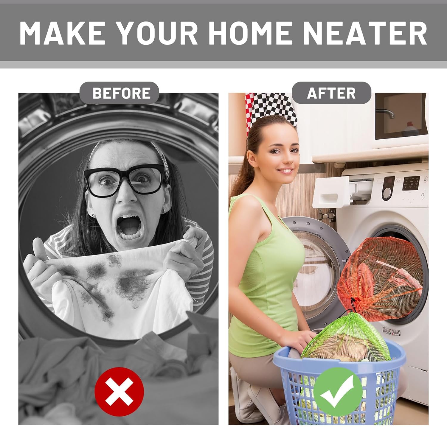 • Color Design and Quantity: you will receive 12 mesh heavy duty laundry bag in 6 bright colors (black, red, yellow, green, orange, blue), 2 of each color; This combination provides a wide range of usage options and is convenient for sorting, you can sort clothes by different colors; The mesh is convenient for breathability to avoid odors
