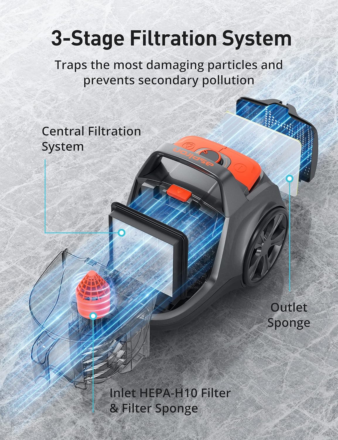 • No Air Pollution: Cyclone technology separates dust from the air; a fully sealed system with HEPA-H10 inlet filter traps fine dust, and particles and expels clean air through the outlet sponge - No worries of secondary pollution or allergy