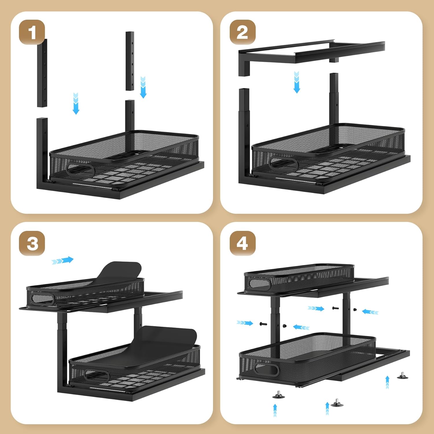 • 【Built to Last with a Sturdy Square Frame】 Our organizer is engineered with a robust 12mm x 12mm square tube frame, significantly sturdier than the common 8mm tubes found in many products. This durability ensures that your Under Sink Organizer can handle daily use with ease, providing lasting support and peace of mind.