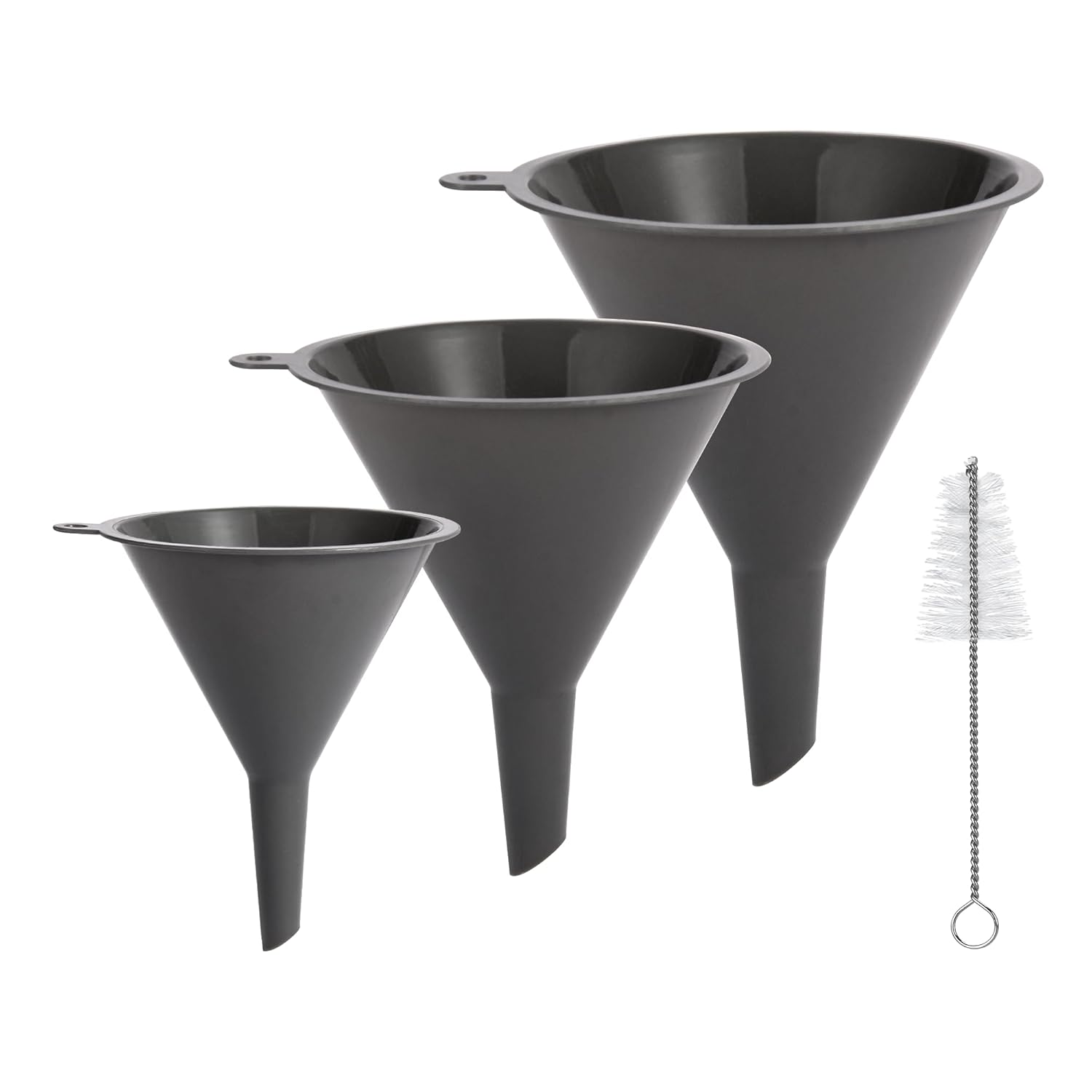 Plastic Kitchen Funnel Set of 3 with Clean Brush, Round Food Funnels for Kitchen Use, Multifunctional Funnels for Filling Canning&Bottles, Suitable for Cooking, Lab and Automotive Use