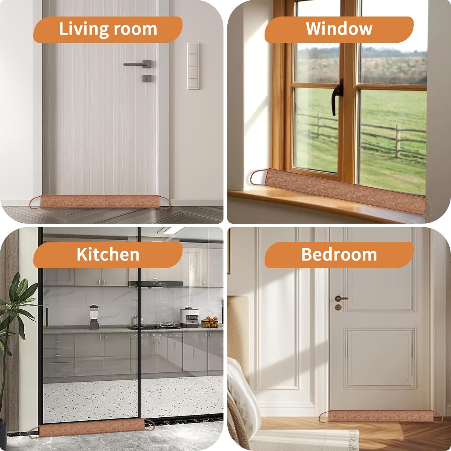 • 【Premium Material】The door draft stoppers for bottom of door are made of high-quality cotton cloth and are filled with polyester wadding and especially added glass beads to add its weight, weighs up to (2.2 lb) and ensure the draft stopper is not easily moved away from your door. This draft stopper helps prevent exterior drafts making it more efficient to heat and cool your home.