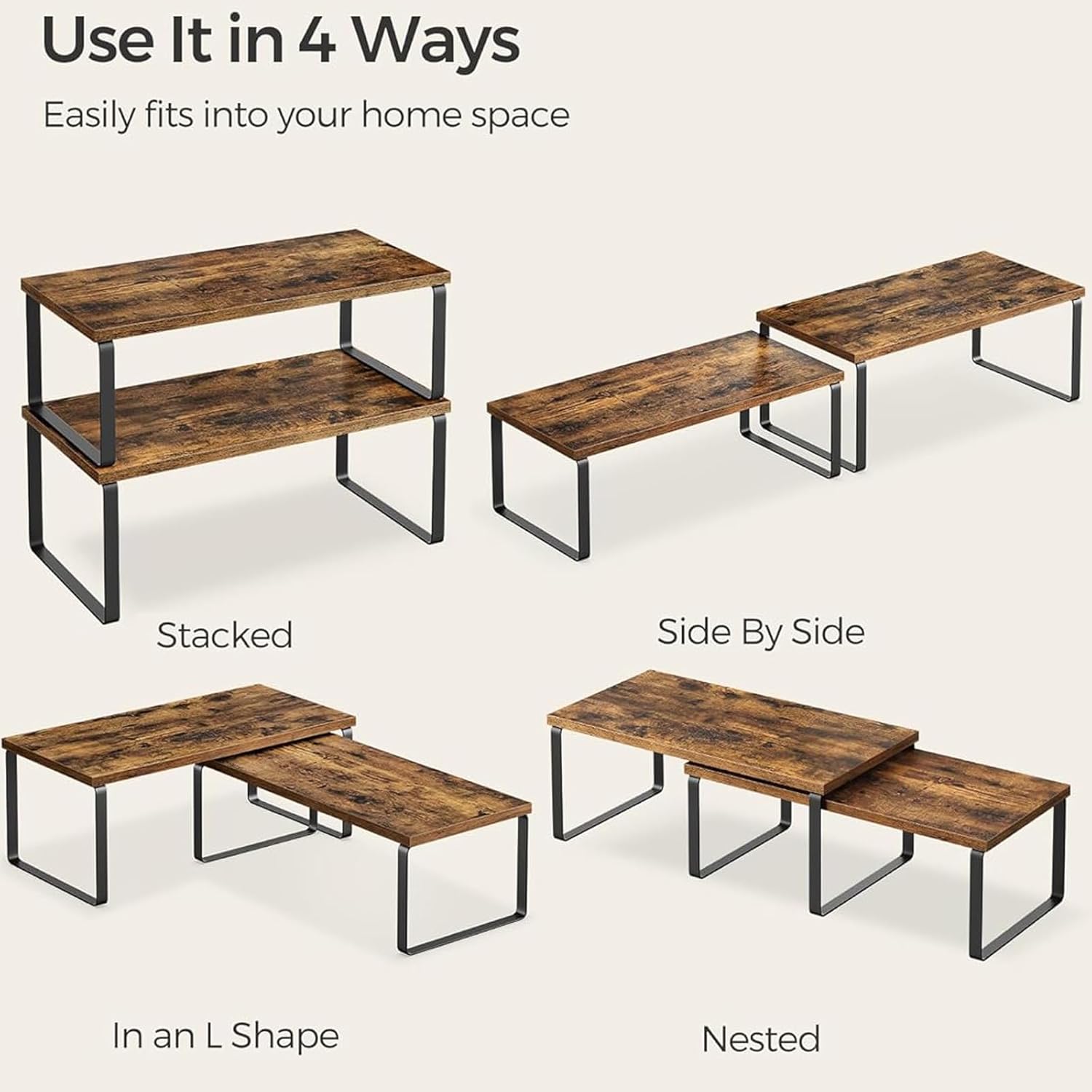 Cabinet Organizer Shelf, Kitchen Counter Storage, 2-Piece Set, Stackable Spice Rack, Metal and Wood (Black and Rustic Brown)