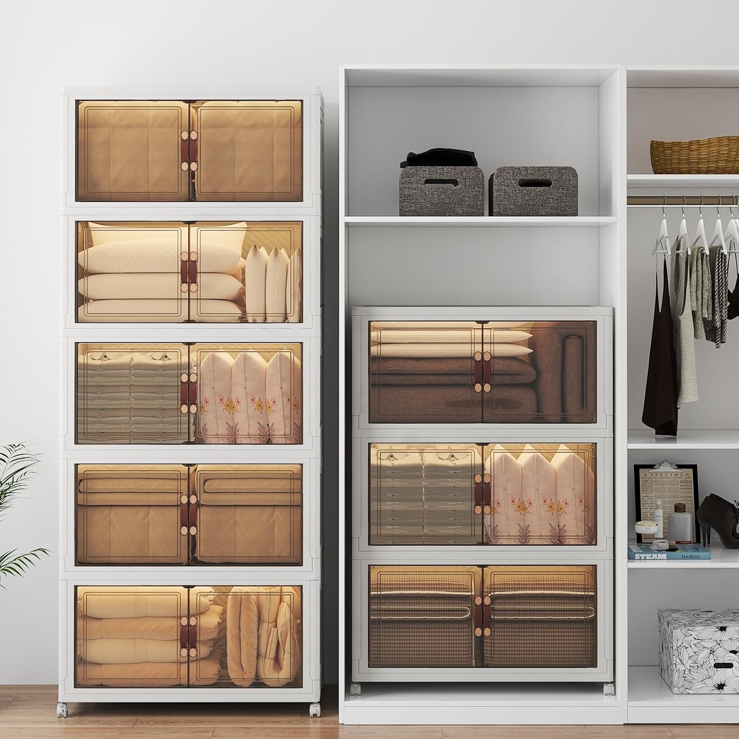 Extra Large Stackable Storage Bins with Lids & Wheels & Door, 1280QT-160QT/40GAL*8Pack Foldable Collapsible Closet Organizers, Plastic containers drawers for bedroom Dorm
