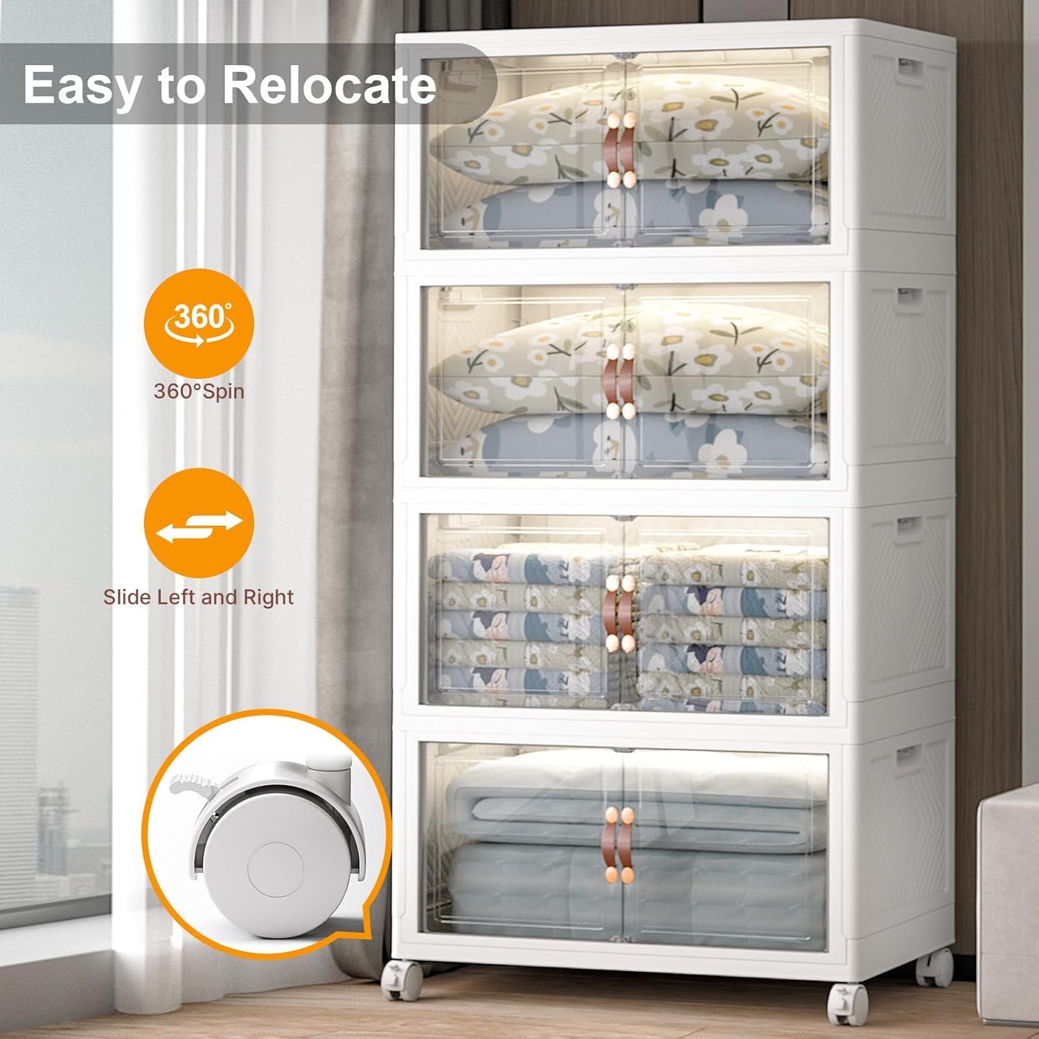 • 【Smooth Mobility with Locking Wheels】: Easily move your storage wherever you need it. These stackable storage bins with wheels feature four smooth-rolling casters, including two locking brakes, keeping your bins stable yet mobile — great for bedrooms, dorms, or offices.