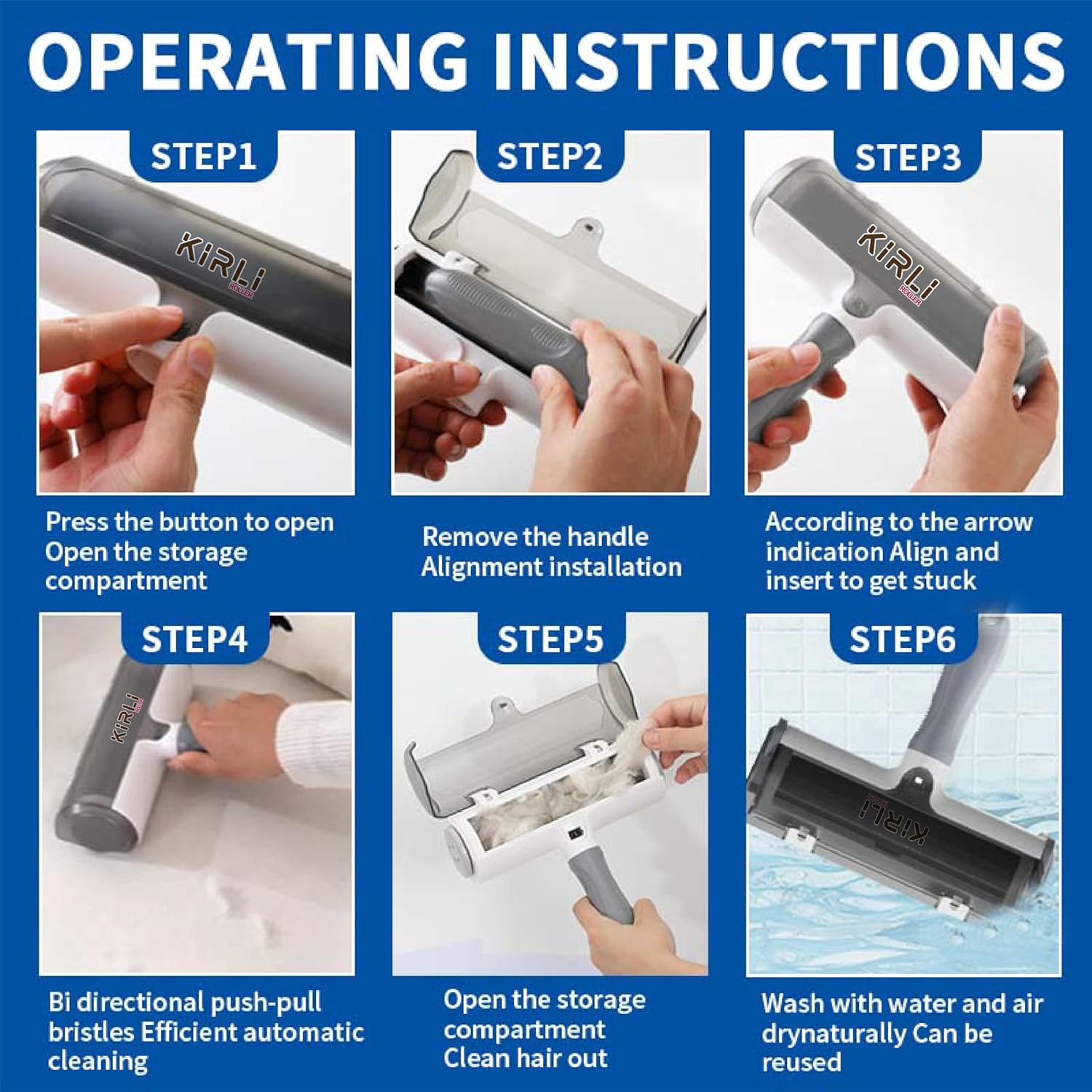 KIRLI Roller Pet Hair Remover and Reusable Lint Roller – Furniture, Couch, Carpet, Clothing and Bedding Cat and Dog Hair Remover – Portable Multi-Surface Fur Removal Tool (Gray)