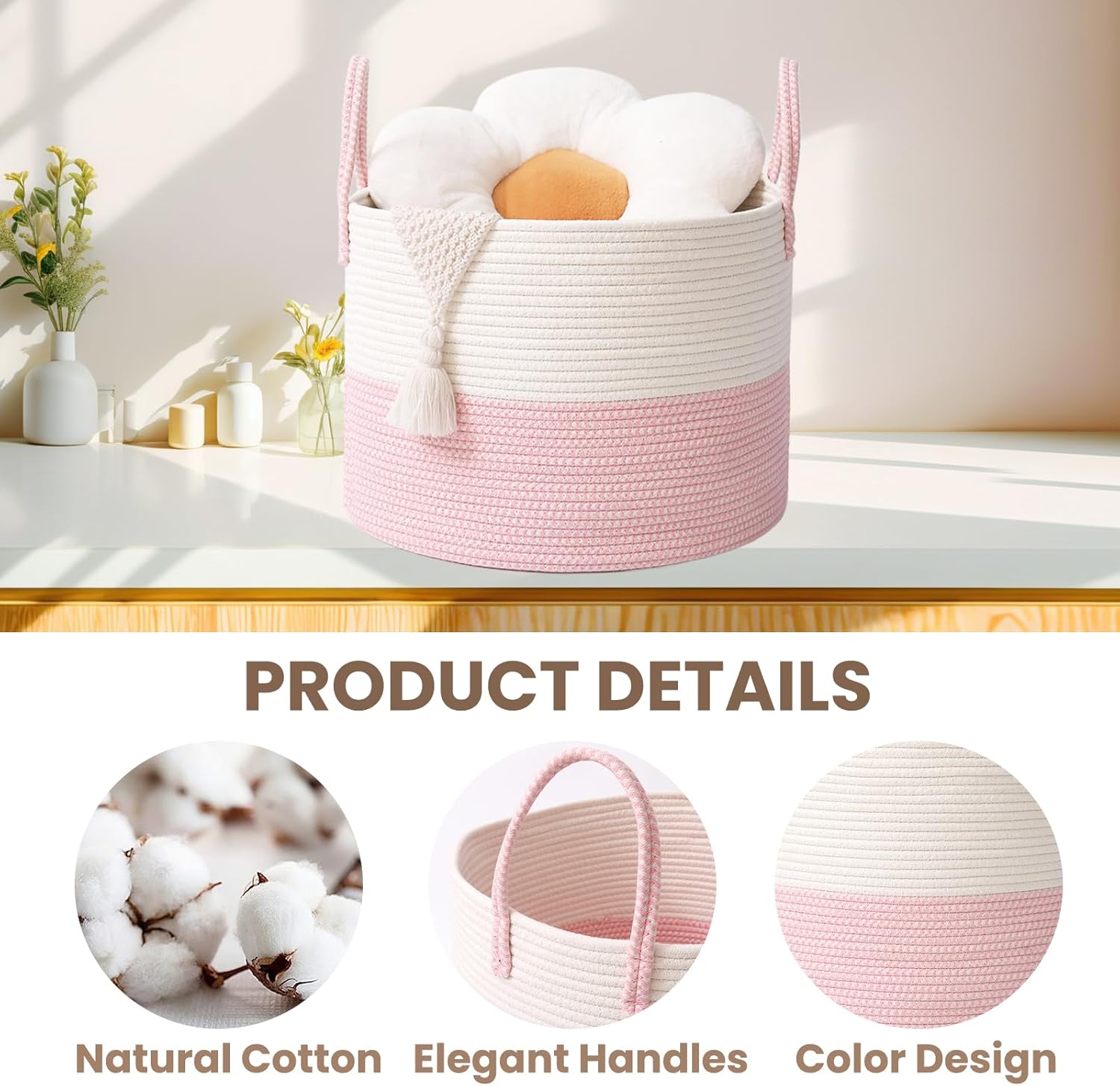 • Natural Handwoven Quality -- Crafted meticulously by hand from natural cotton rope, each basket is a unique, eco-conscious piece. Free from plastics and harsh chemicals, it offers lasting durability for worry-free use.