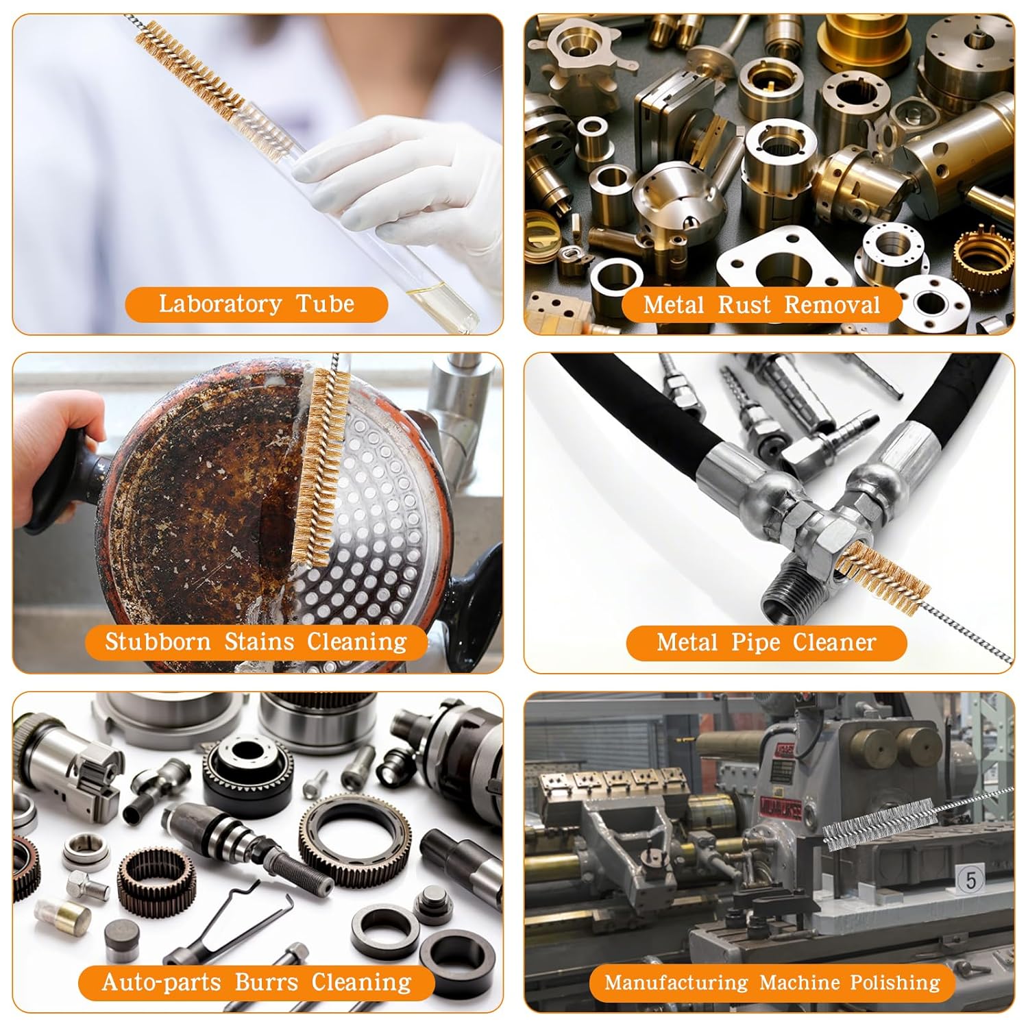 • [Safety and Tips] This metal pipe cleaner is for steel, stainless and other metal surfaces that be available for labware and stubborn stain cleaning. Keep these tools away from children and wear safety goggles to ensure safety. The mini wire brush will be covered with lubricating oil to maintain the stability of the wire in the production process, the product will have a slight odor and traces of lubricating oil after receiving, you can use paint thinner to wash away