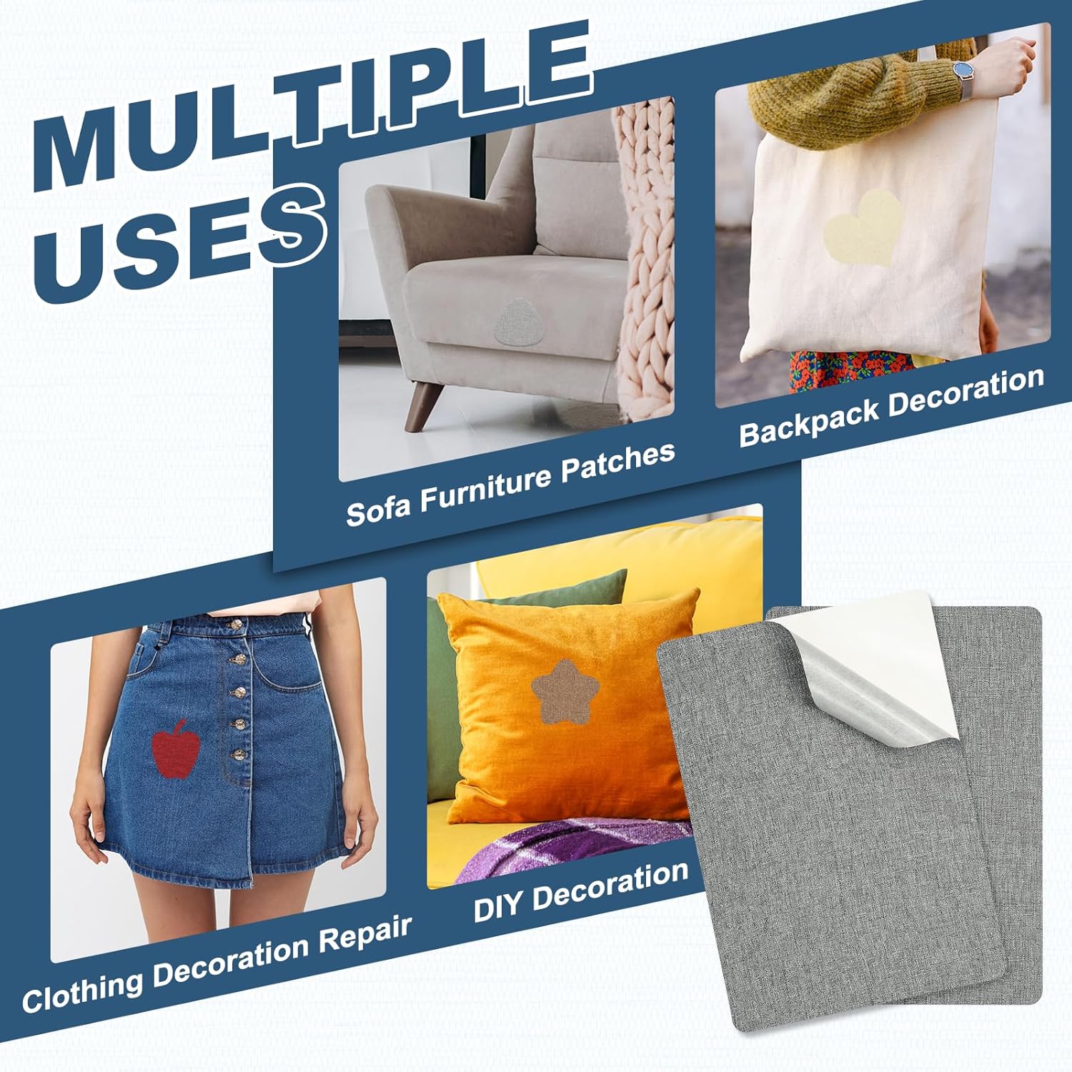 • Advantage: Our fabric repair patch tape is crafted from durable linen fabric, featuring an easy peel-and-stick design with a soft touch. Fabric patches are resistant to pilling and shrinking, machine washable for multiple uses while retaining its adhesive qualities.