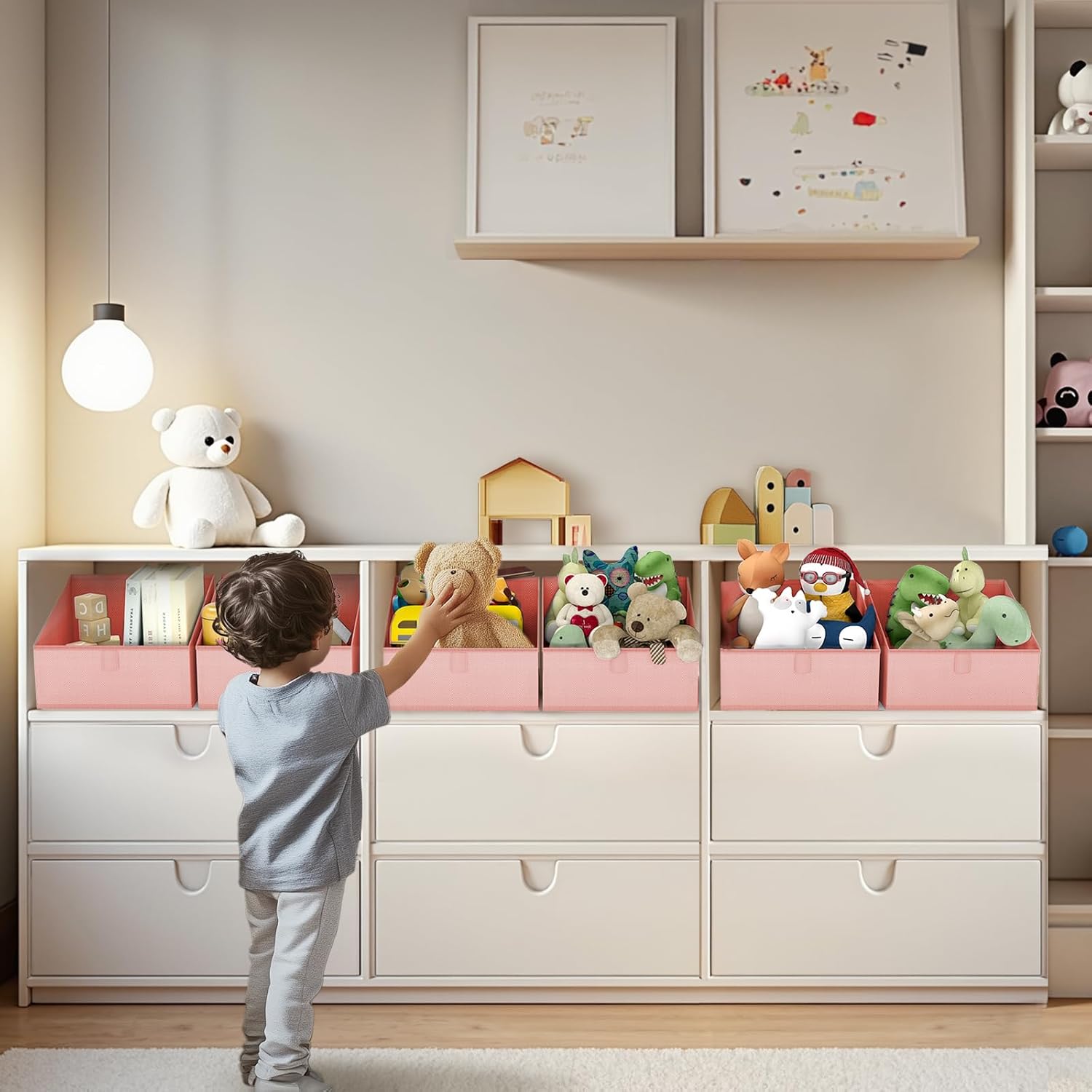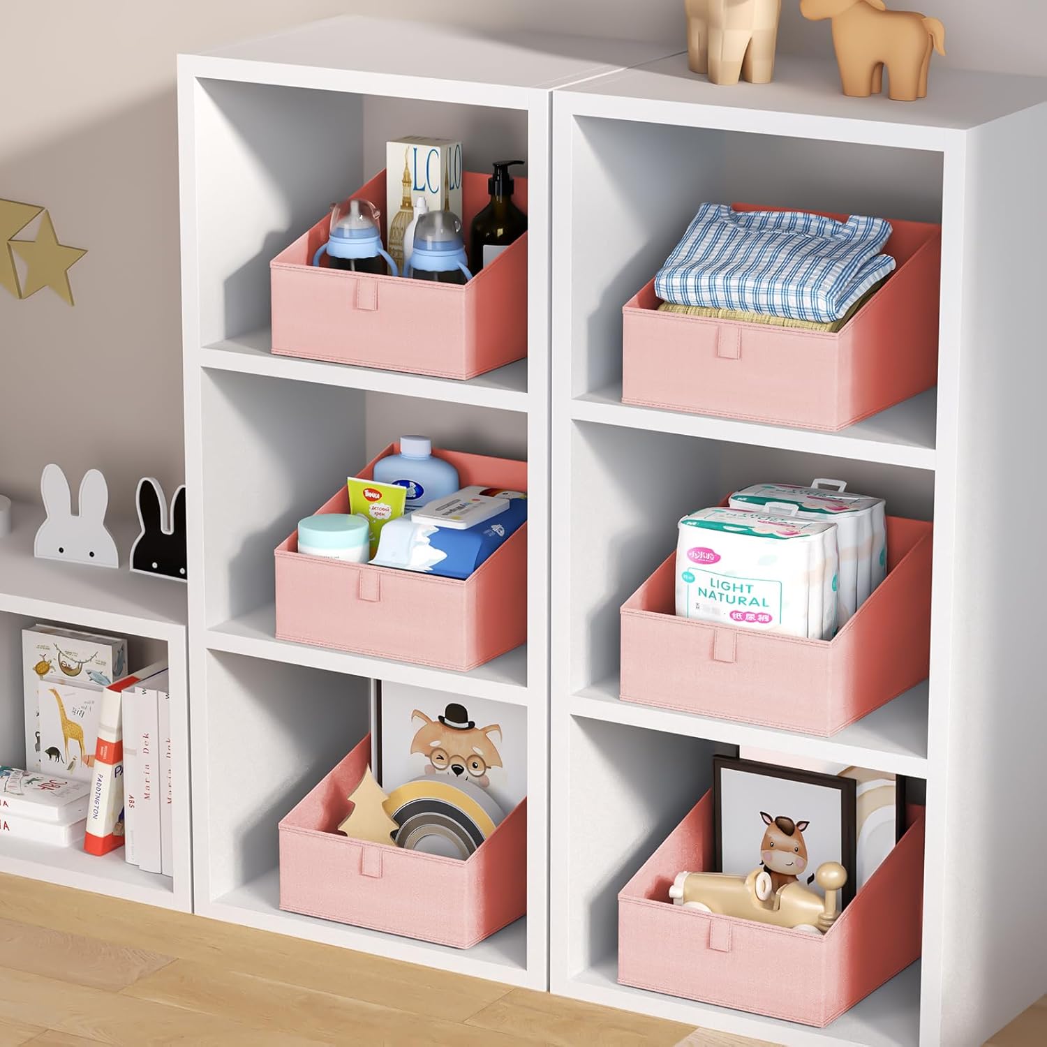 DIMJ Closet Organizers Bins Storage - Foldable Fabric Cubes Clothing Organization,6 Pack,Pink