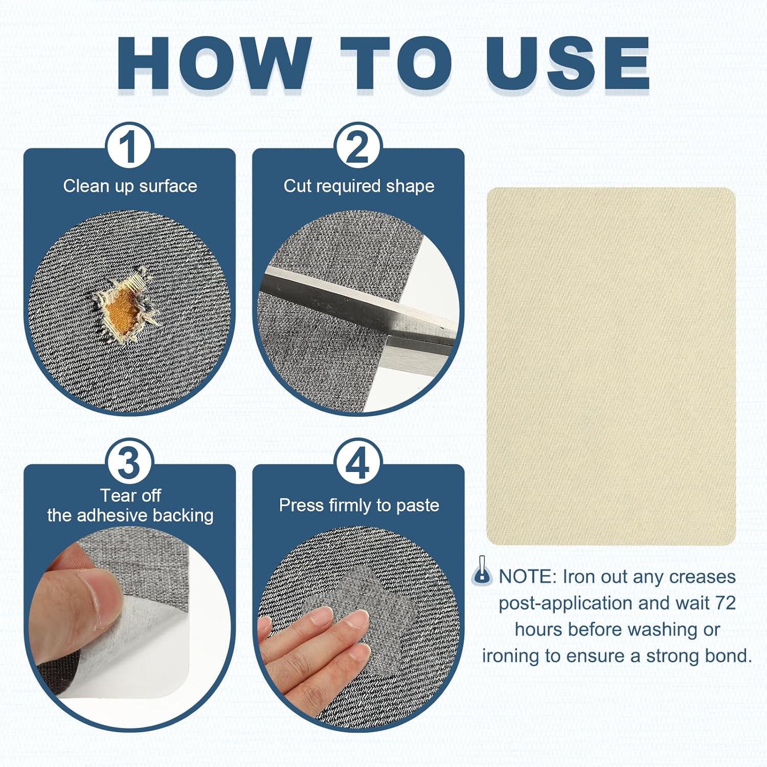 • Advantage: Our fabric repair patch tape is crafted from durable linen fabric, featuring an easy peel-and-stick design with a soft touch. Fabric patches are resistant to pilling and shrinking, machine washable for multiple uses while retaining its adhesive qualities.