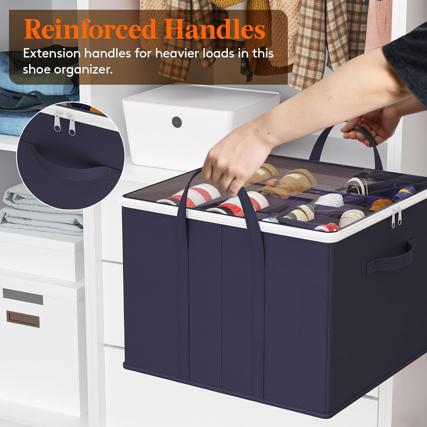 Lifewit Shoe Storage Organizer for Closet Fits 12-16 Pairs, Fabric Large Shoe Box Storage Containers with Clear Cover, Foldable Bins Fit for Boots Heels Sneakers 17"(L) x 17"(W) x 12.5"(H) 2 Pack Blue