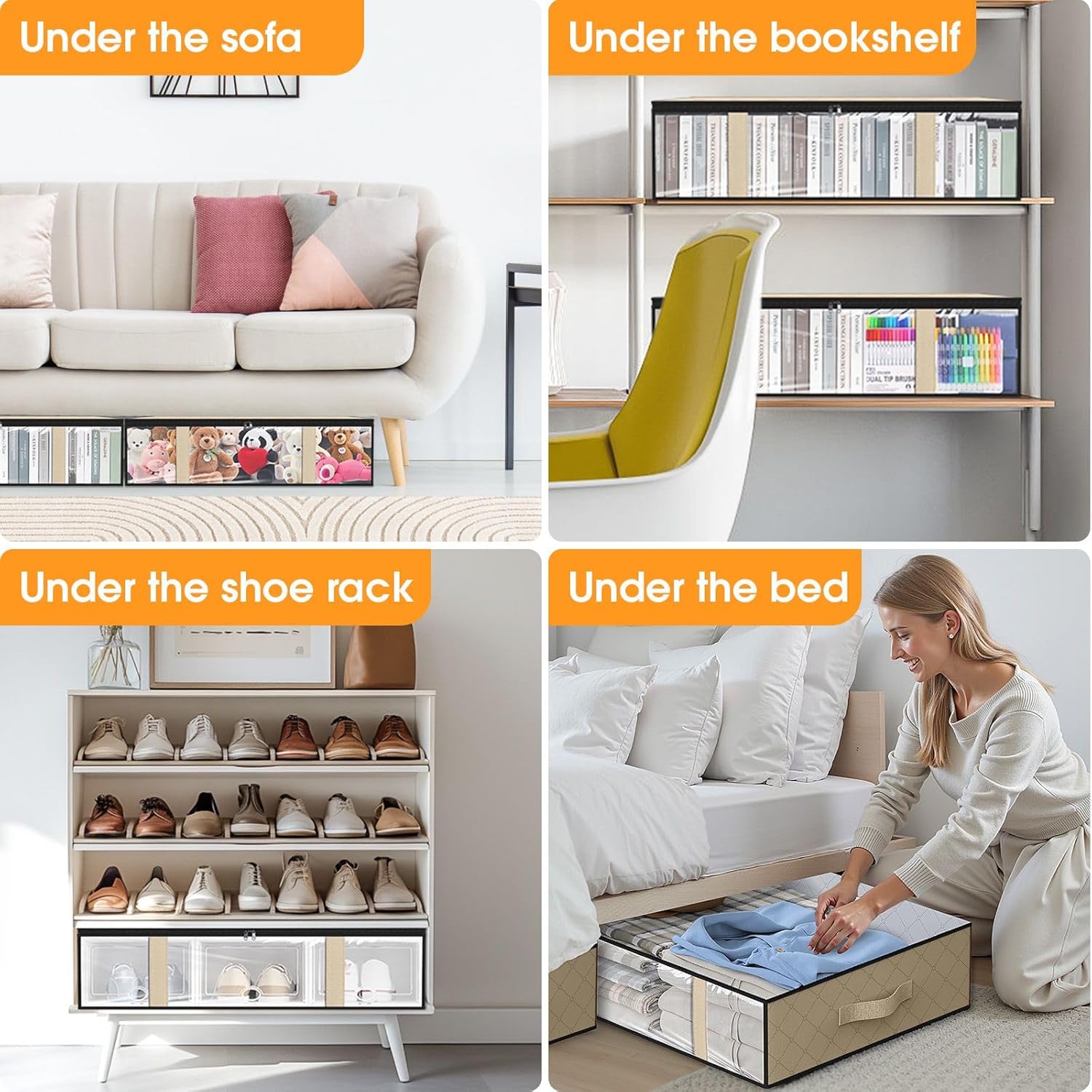 • Multifunctional Storage Organizer:StorageRight under bed storage containers for organizing fits perfectly under your bed. From blankets and pillows, to out-of-season clothes and shoes, to books! These storage bags have sturdy construction and can handle all types of storage needs