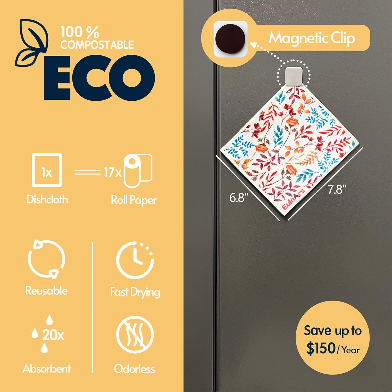 • Washable and Resuable: Tested to be reusable up to 200 times, our swedish dish cloths for washing dishes can replace up to 17 rolls of paper towels. Affordable, durable, and easy to care for, they offer a long-lasting alternative to disposable paper towels