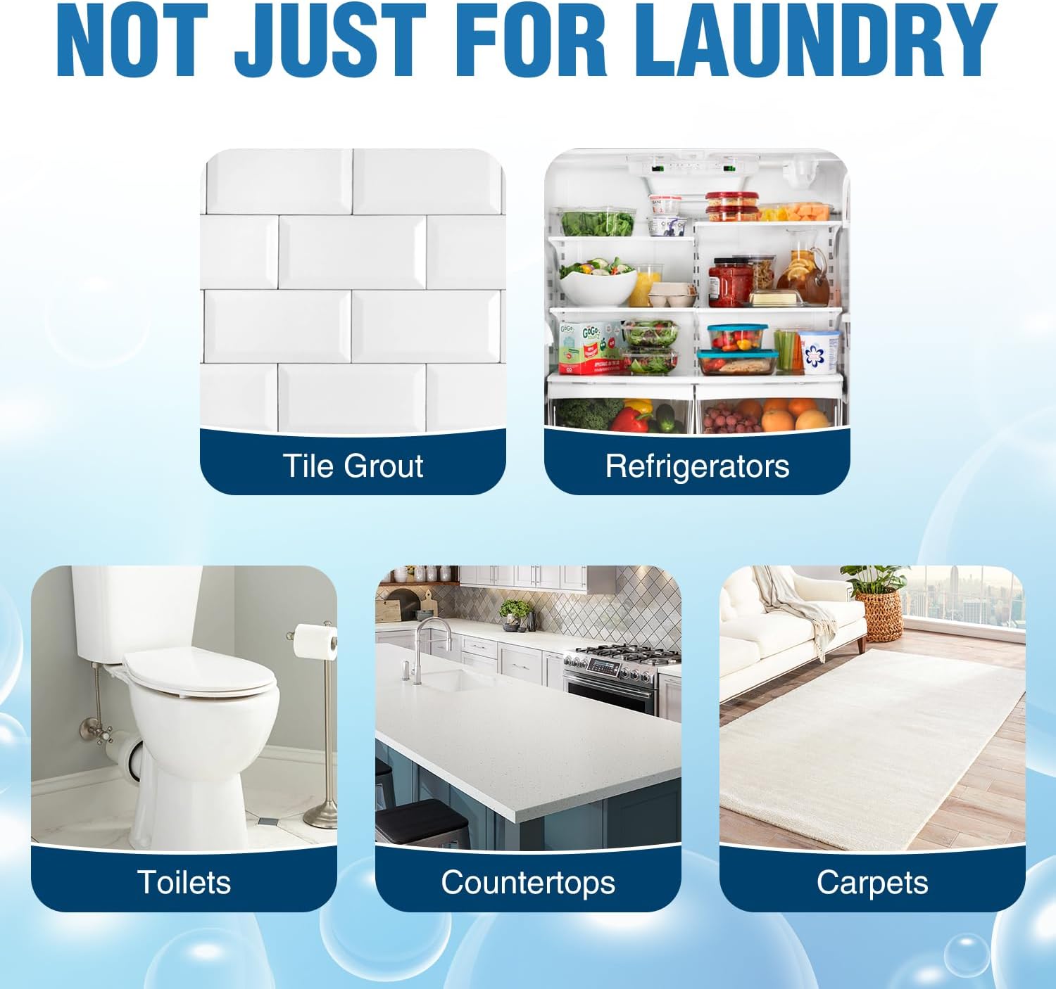 • Oxygen-Powered Stain Removal:Break down tough stains like wine, coffee, grass, sweat, and blood with our powerful sodium percarbonate formula. Acts as a laundry booster that helps whiten whites, brighten colors, and lift deep-set stains with the natural power of oxygen.