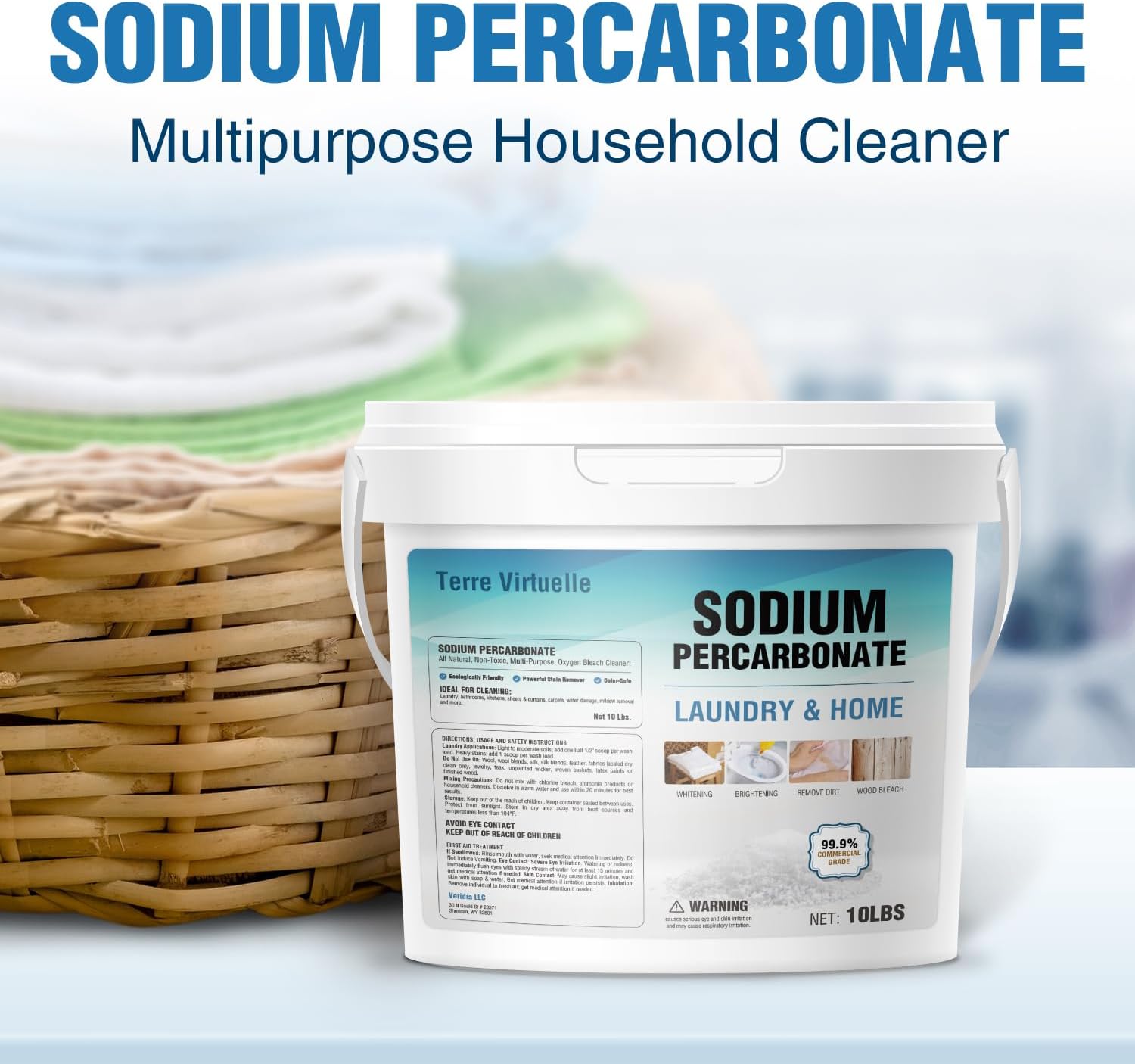 Sodium Percarbonate 10 lbs – Oxygen Bleach Powder & Laundry Booster – Multi-Purpose Cleaner for Stain Removal, Whitening, Deodorizing – Chlorine-Free