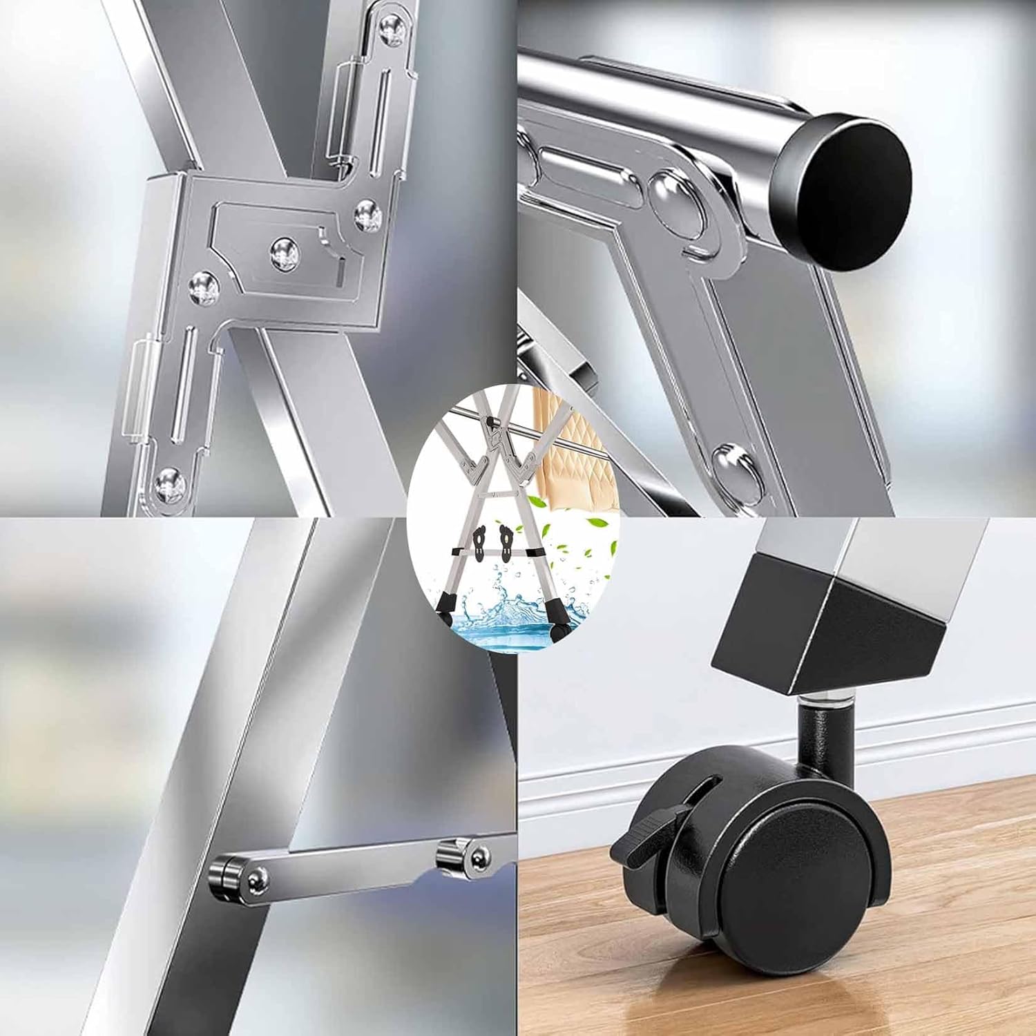 5Poles Clothes Drying Rack,Stainless Steel Laundry Rack with Wheels, Blanket Rack Clothesline, Extendable,with Windproof Hooks,for Indoor Outdoor