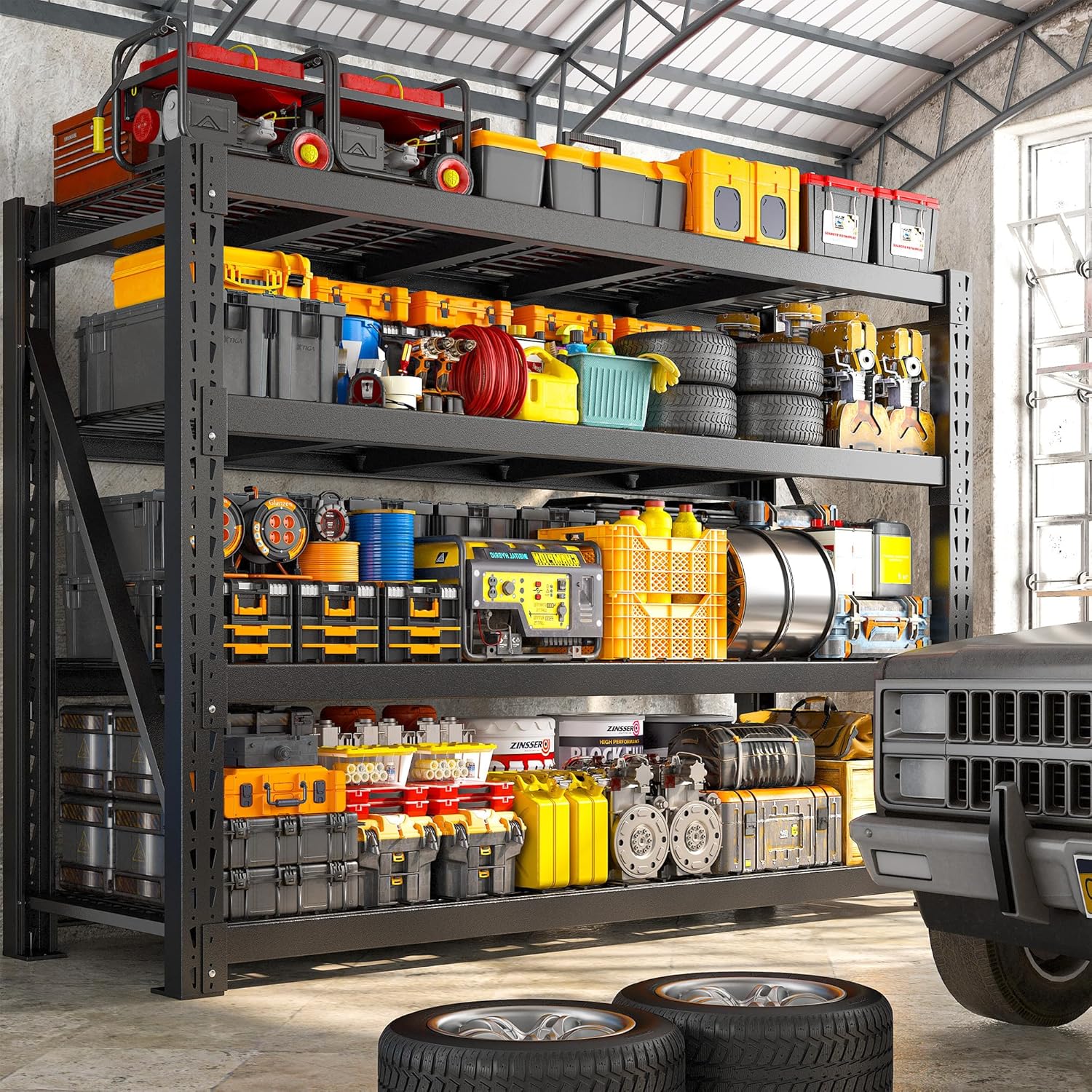 • 【Adustable Industrial Shelving】Heavy duty garage shelving with adjustable design, no need for tools to adjust the height of the tiers to DIY storage space, whether it's a large garage tools accessories or small items can be easily stored.